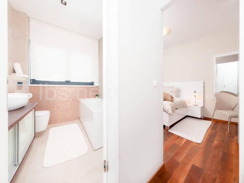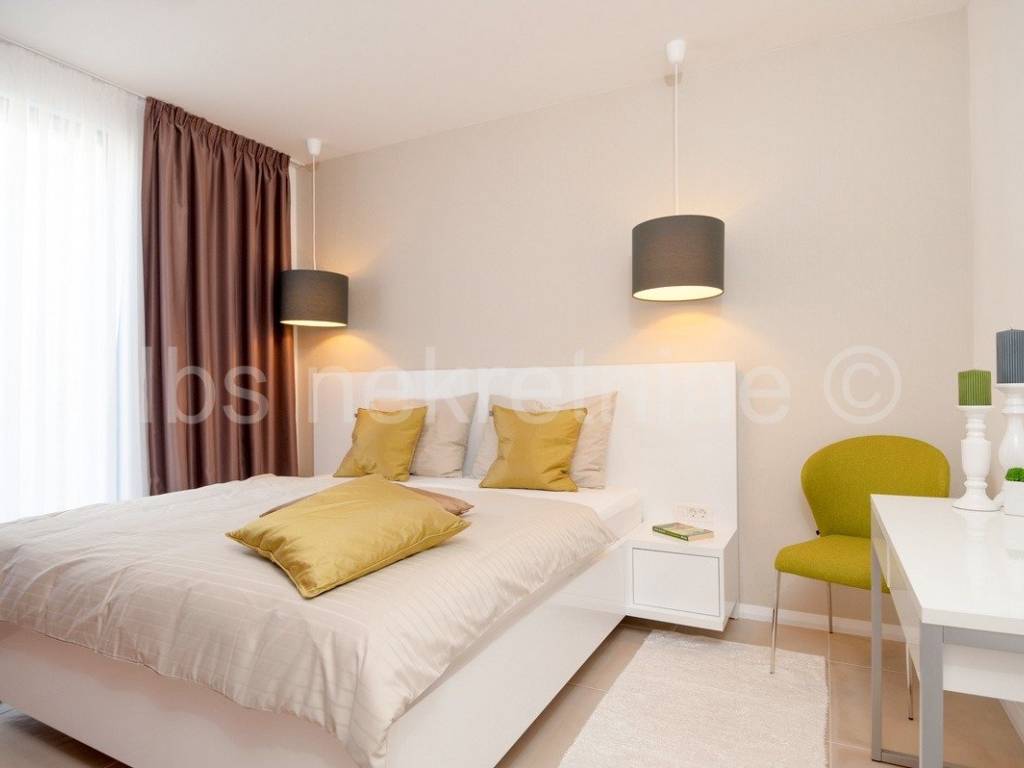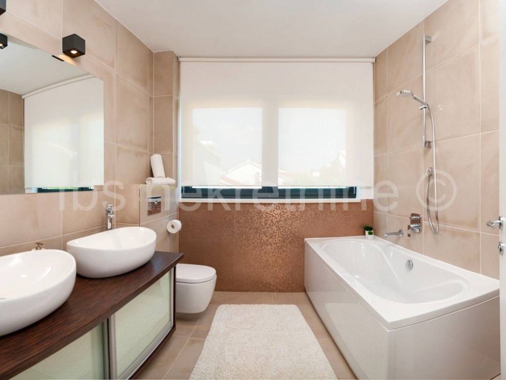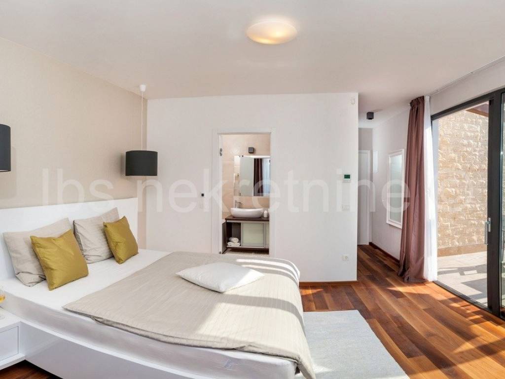 Prizemlje se sastoji od kuhinje, blagavaone i dnevnog boravka, dvije sobe s kupatilom, sanitarnog čvora, hodnika te unutarnjeg stubišta koje vodi na kat gdje se nalaze četiri sobe svaka sa kupatilom. Iz dnevnog boravka se izlazi u dvor gdje se nalazi bazen i roštilj.