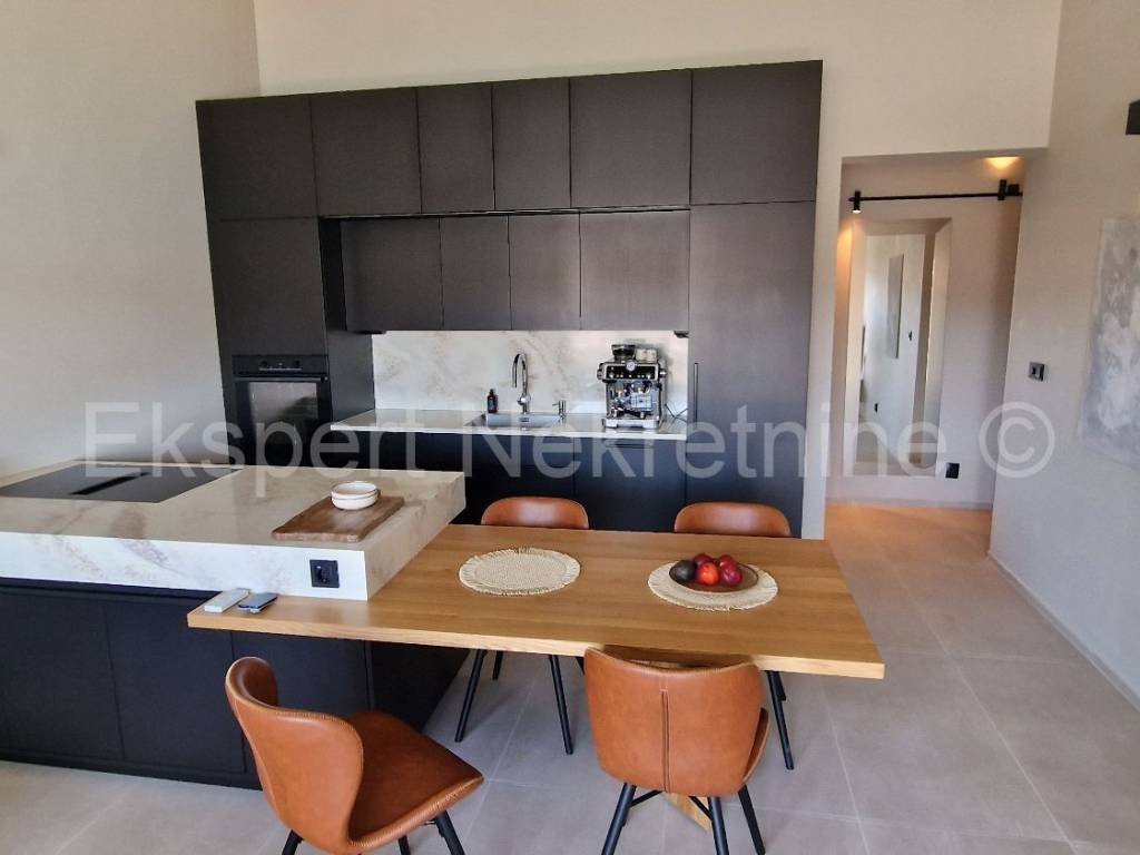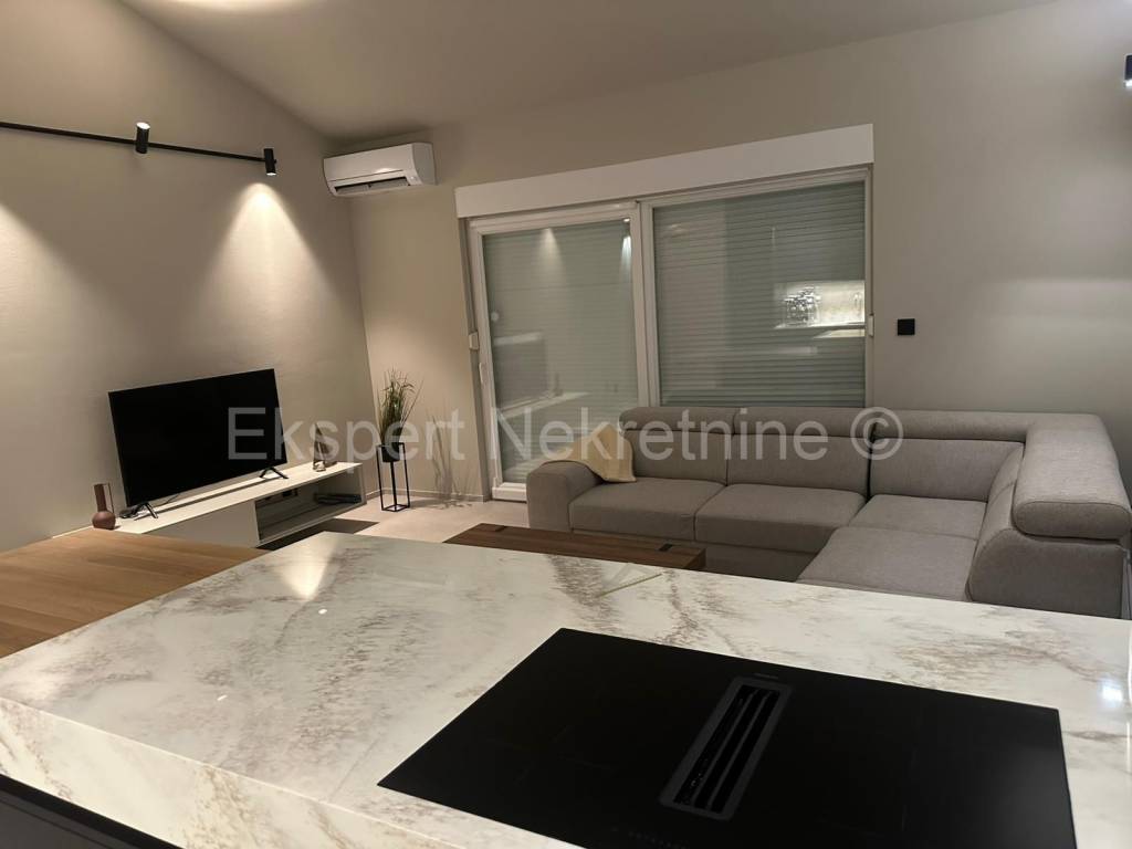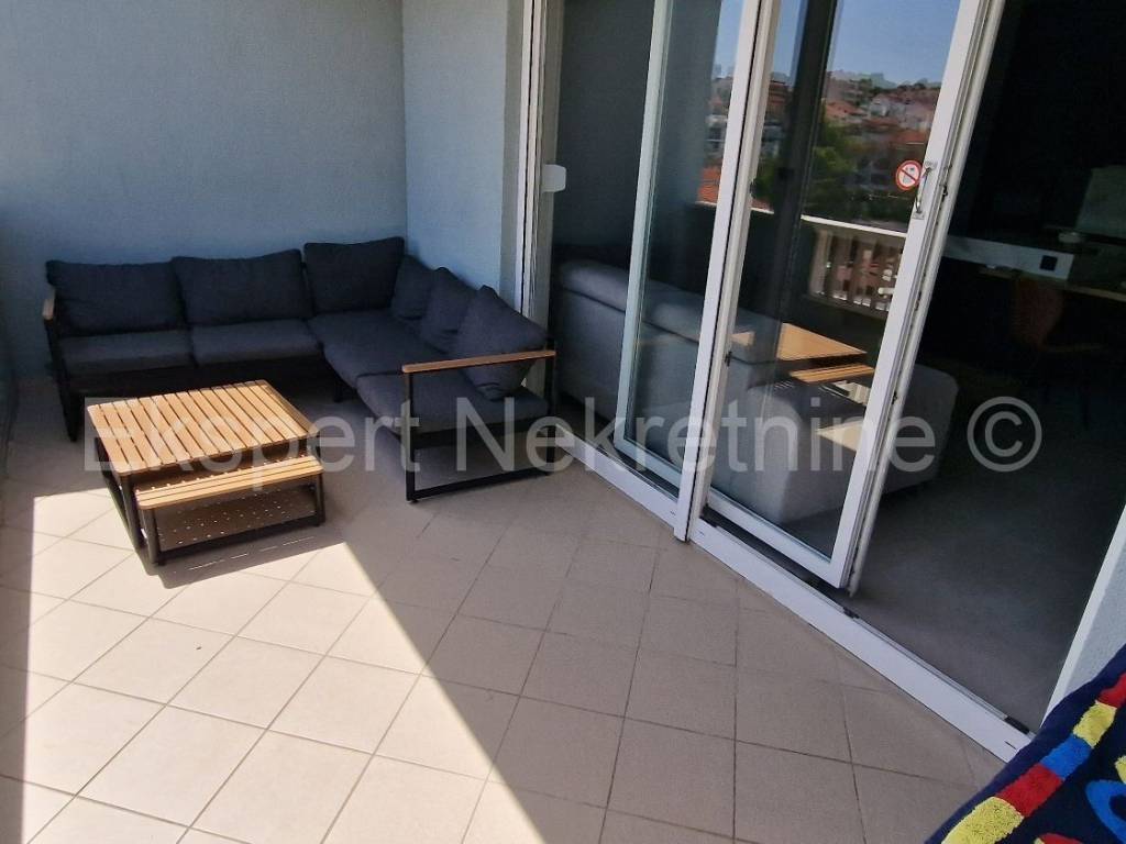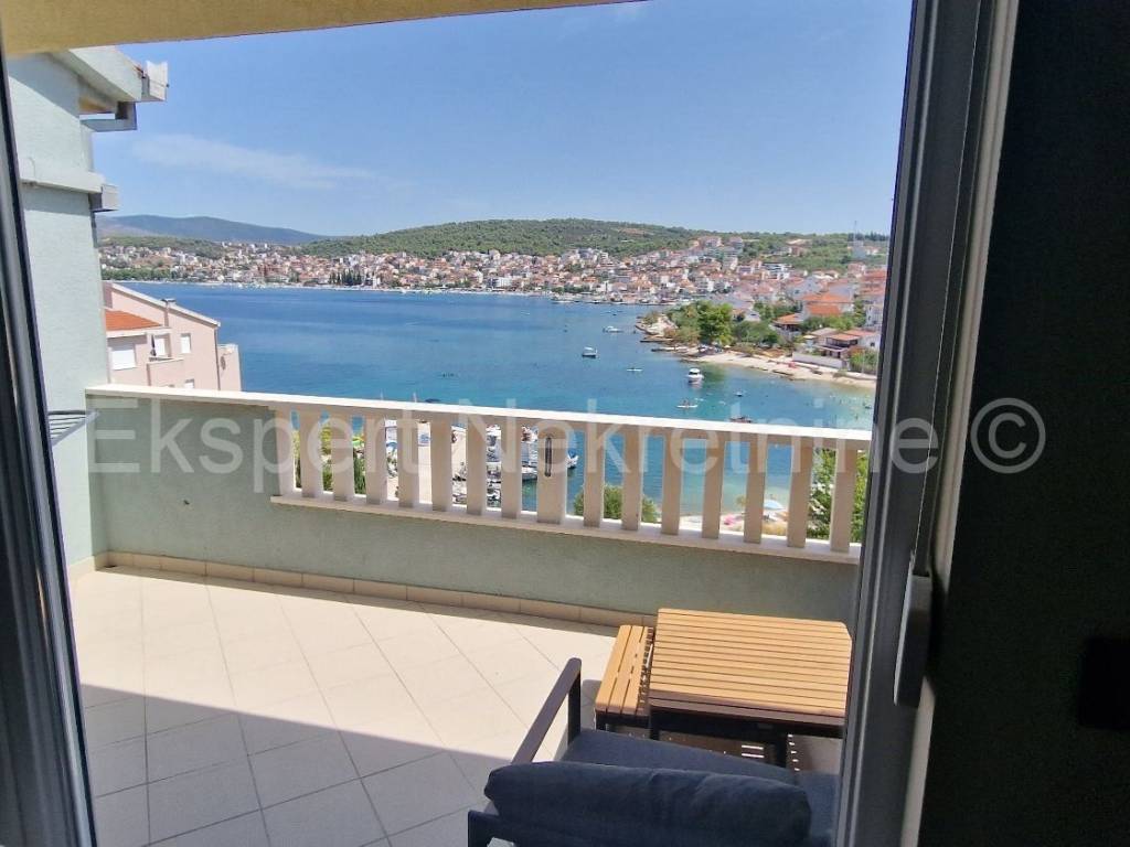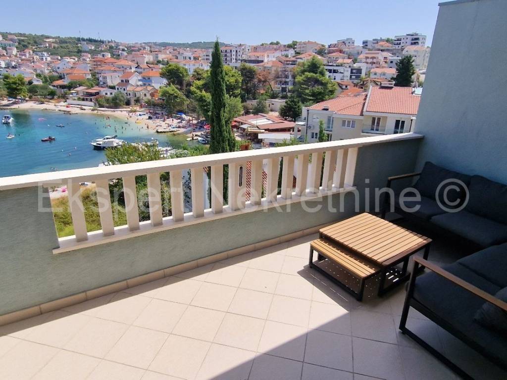 Čiovo, Okrug Gornji, second row from the beach, two-bedroom apartment 68 m2, in a building with 10 apartments. The apartment is located on the 4th floor (last), and has two large bedrooms, hallway, bathroom, kitchen with dining room and living room with access to a loggia with an open view of the sea, from which the apartment is only 40 m away. The apartment is completely renovated and equipped with new and modern furniture that is included in the price of the apartment, and a smart house has been installed (it is possible to control all functions in the apartment with a mobile phone). Excellent and quiet location with a panoramic view of the sea, close to a large beach and the sea, and all other amenities. The apartment is ready to move in immediately. Ownership is in order. Possible purchase on credit.For more info, contact the agency.