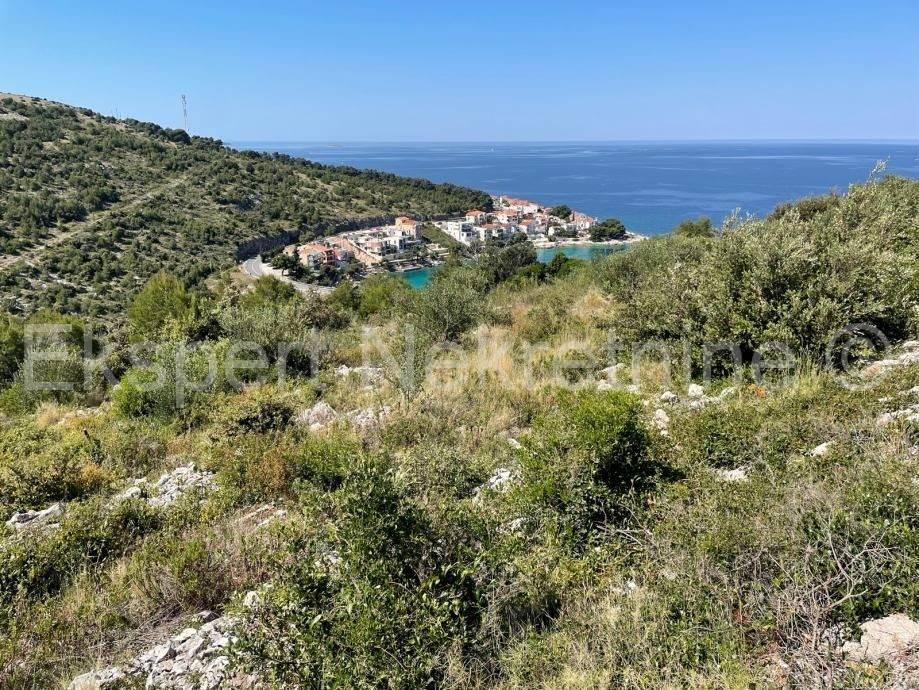 Primošten, Vadalj, construction land 1645 m2, rectangular shape, dimensions 27 m x 61 m. There is a public road next to the land. Electricity and city water supply are approx. 70 m away. There are 20 olive trees on the land. The land is located in a quiet environment surrounded by agricultural and forest land. on which construction is not allowed, so it offers an unobstructed view of the sea, Gaj hill with the statue of Our Lady of Loreto and the entire hinterland of Primošten. The land is located in a construction area where there is no obligation to create an urban development plan. It is possible to build one or more residential buildings on the land. The possibility of building a residential building with a maximum of 4 residential units and residential buildings with 5 or more residential units is prescribed. 5 km from the center of Primošten, 3 km from shops, clinic...