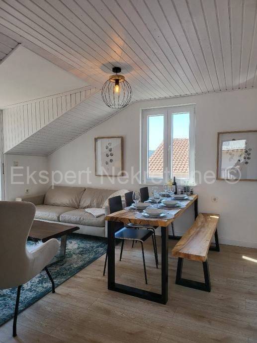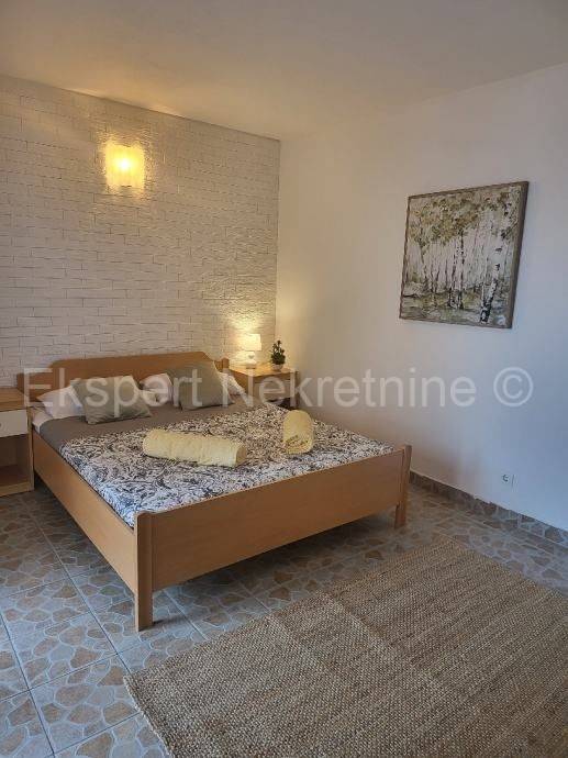 Primošten, detached house 196 m2 with 4 residential units in a great location. Beautiful views of the sea and the old town, 500 meters to the beach. The studio apartment on the ground floor is 28m2, the one-room apartment, which is also on the ground floor, is 37m2. On the first floor there is an apartment of 65 m2 and consists of two bedrooms, a living room, a bathroom and a kitchen. In the high attic is the fourth apartment of 60 m2, which has two bedrooms, one utility room (which can be used as a room), living room, bathroom and kitchen. Each apartment has its own terrace or small yard. Two outdoor parking spaces belong to the house. Ownership 1/1, legalized, energy certificate.