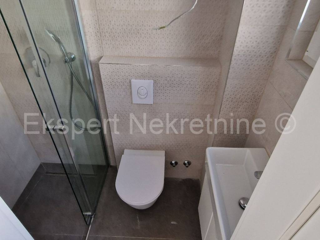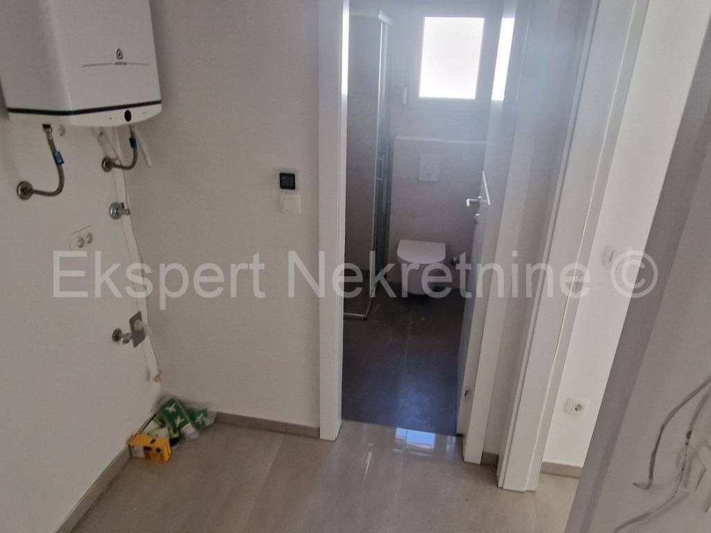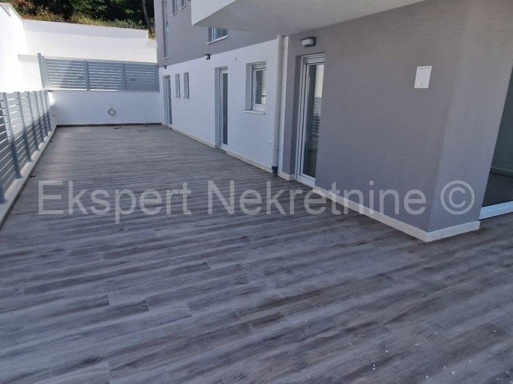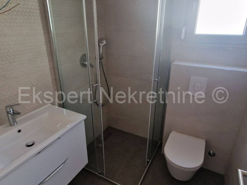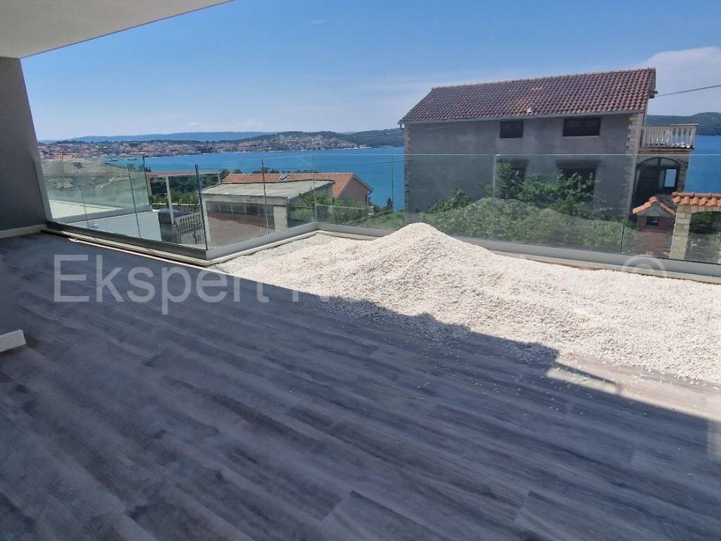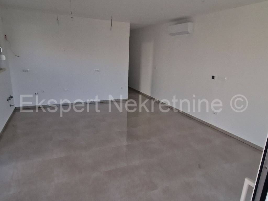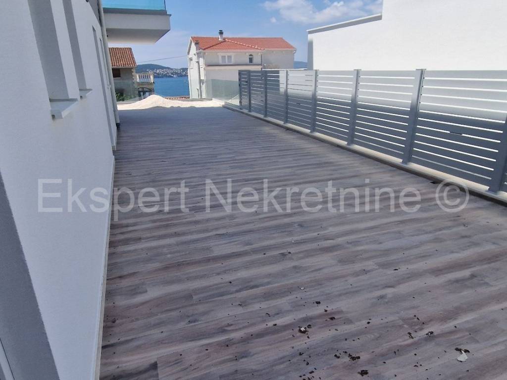 Trogir, Čiovo, Saldun, two-bedroom apartment 85 m2 (55 m2 + 30 m2 terrace) + garden 63 m2 in a new building in a smaller residential building with only 6 apartments and garages. The apartment is located on the ground floor of the building, oriented north-south-west, and consists of consists of two bedrooms, one with its own bathroom, hallway, bathroom, kitchen with dining room and living room, and a large terrace (30 m2) and a garden of 64 m2. The apartment also has one garage parking space with the possibility of buying an additional one for 20,000 euros. .The building is in the stage of rough work, and the planned completion is at the end of 2024. Quality construction (quality ceramics, PVC carpentry with insulated glass, electric shutters, air conditioning, underfloor heating, etc.). The building is only 150 m from the sea and beaches. Peaceful and quiet location with a view of the sea and islands. Neat ownership. Payment by agreement. For more information, contact the agency.