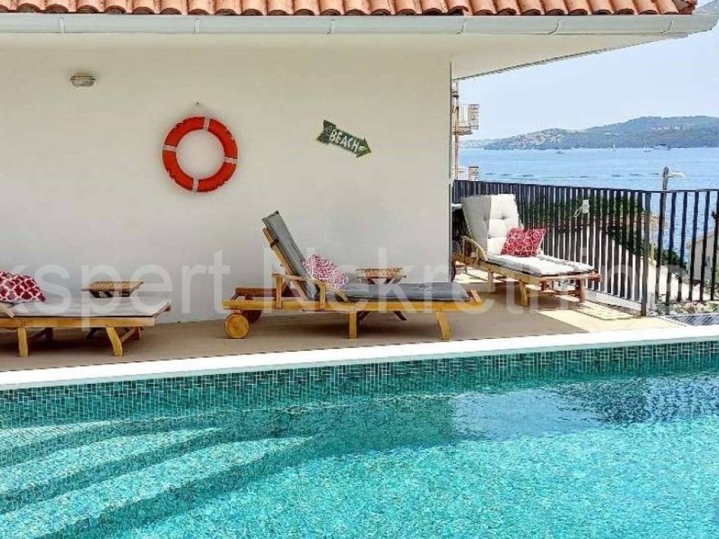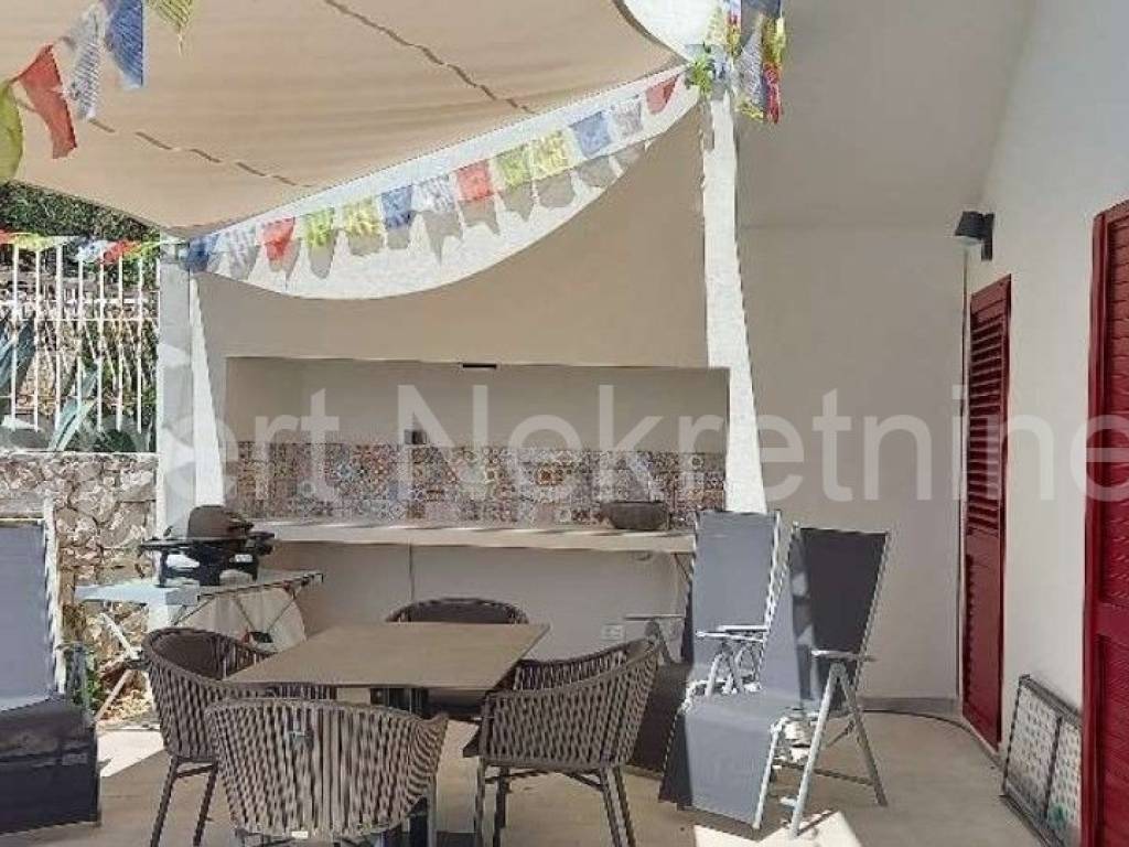 Seget Vranjica, south side of the peninsula, two apartment houses, a total of 394 m2 and 4 fully equipped apartments, in nature one newly built house with three apartments and a swimming pool, and one renovated smaller guest house on two floors, with another swimming pool, and landscaped garden, with a large terrace, barbecue, summer kitchen and a large garage of 50 m2 and several outdoor parking spaces. The houses are located on a plot of 745 m2, and are only 60 m away from the sea and the beach. The larger newly built house has three two-room fully furnished apartments, each approx. 80 m2 net area, with large terraces and an open view of the sea, and a swimming pool with a summer kitchen, terrace and sunbathing area, and in the smaller guest house there is a two-story fully furnished apartment approx. 70 m2 net. Between the houses there is a large pool, with a terrace and a sundeck, and a summer kitchen with a barbecue. Below there is also a large garage of 50 m2 for two cars, and another 5 parking spaces. Proper ownership. For more information, contact the agency.