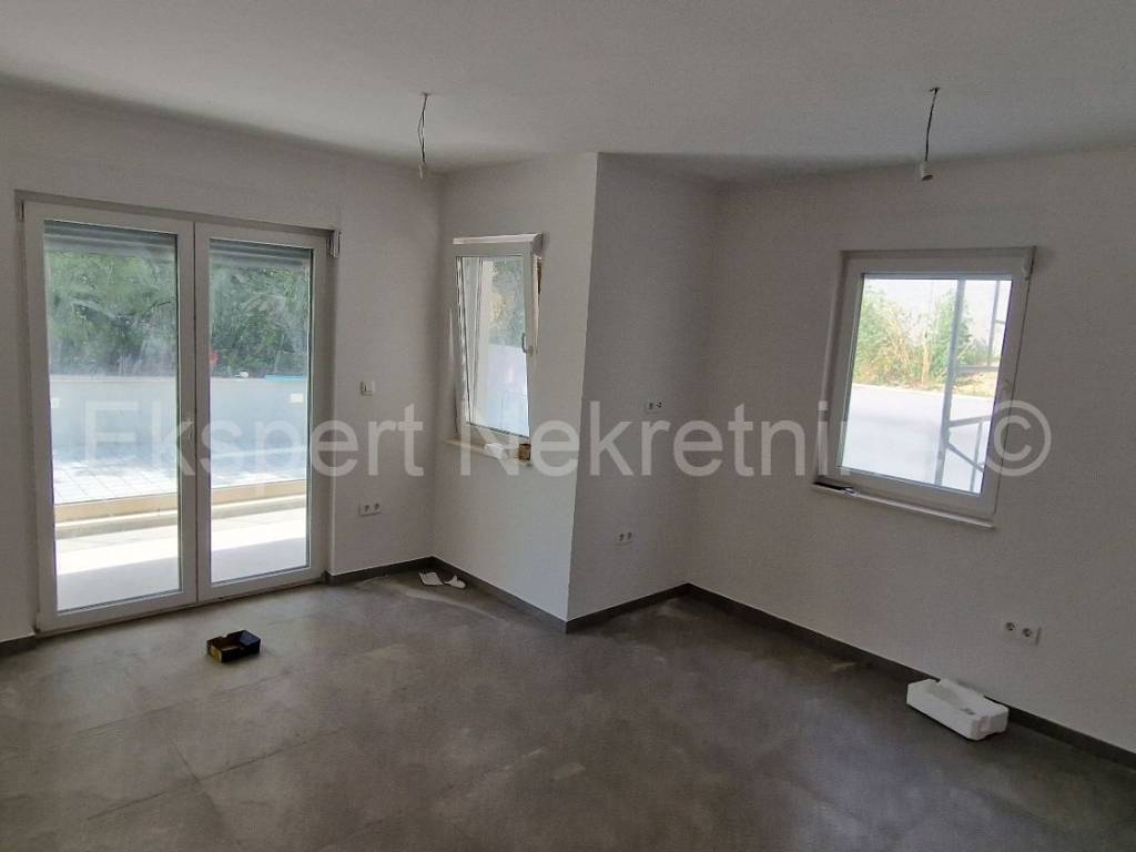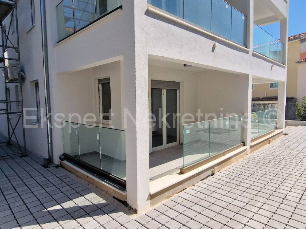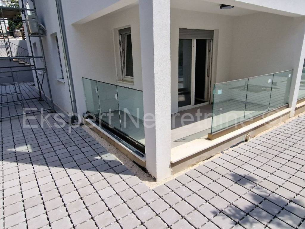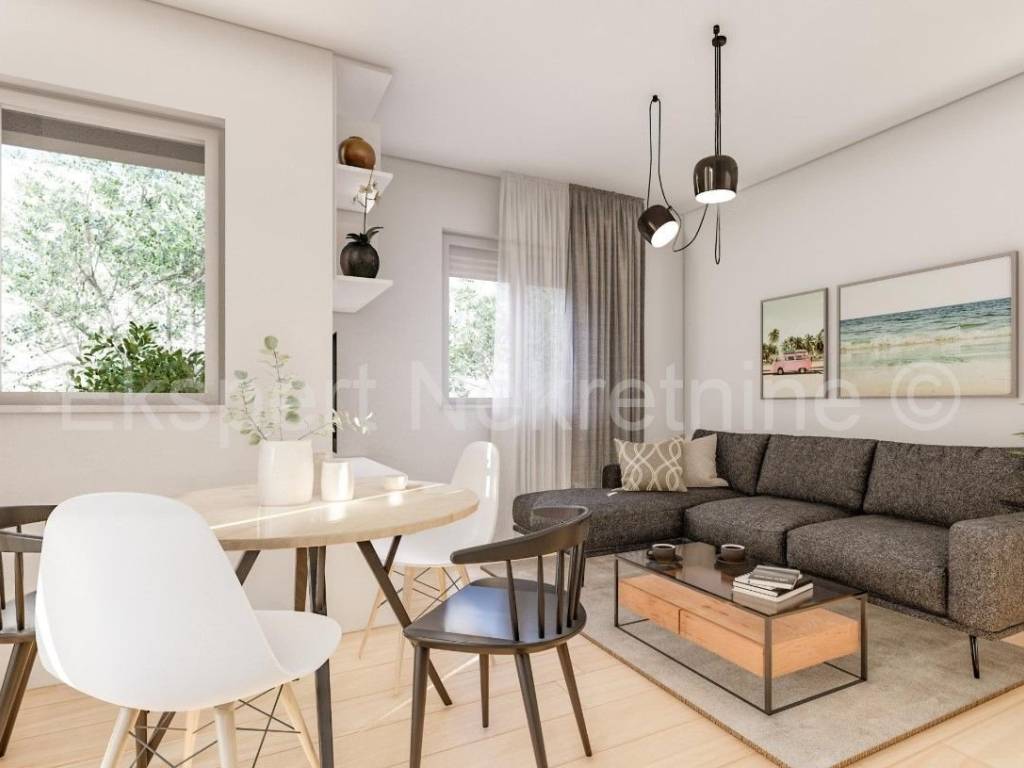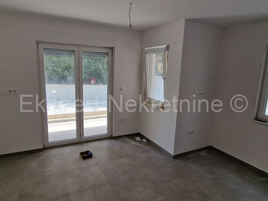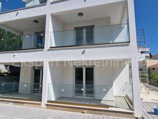 Čiovo, Okrug Gornji, comfortable one-bedroom apartment 54 m2 in a new building with only 6 apartments. The apartment is on the ground floor of the building, and consists of one bedroom, bathroom, hallway, kitchen with dining room and living room, large loggia (9.54 m2) and of the garden belonging to the apartment. It is oriented south-west, and will be fully furnished and equipped with quality furniture and Bosch appliances. etc..).The building is under construction, and the planned move-in is in the summer of 2024. Payment by construction stages. The apartment is only 200 m from the sea and the beach, and there are shops, restaurants and cafes nearby. also sells one outdoor parking space, the price of which is 10,000 euros and is paid separately from the price of the apartment. Ownership and construction documentation are in order. For more information, contact the agency.