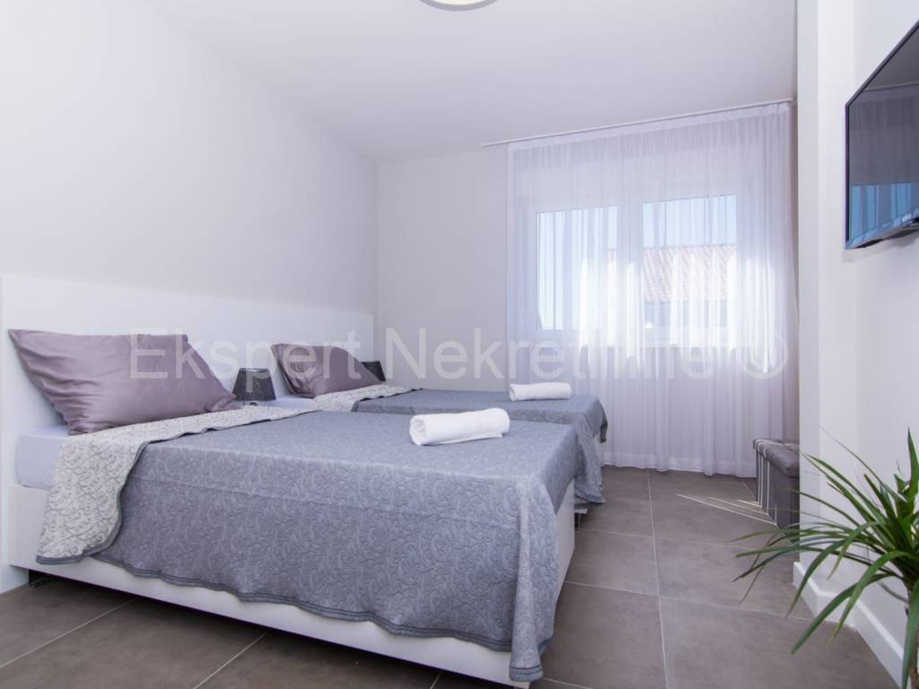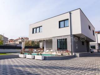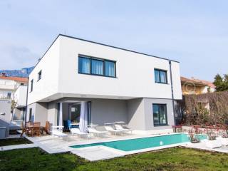 Kaštel Kambelovac, complex of two villas for sale, each 250 m2, on a plot of 865 m2, on two floors, each with its own pool. On the ground floor there is a large living room with a dining room and kitchen, a bathroom, a study, and an internal staircase that leads to the second floor where there are 4 bedrooms and three bathrooms and a wardrobe. The villas are fully furnished with new and modern furniture and are in tourist rent. Excellent and quiet location only 400 meters from the sea. Proper ownership. For more information, contact the agency.