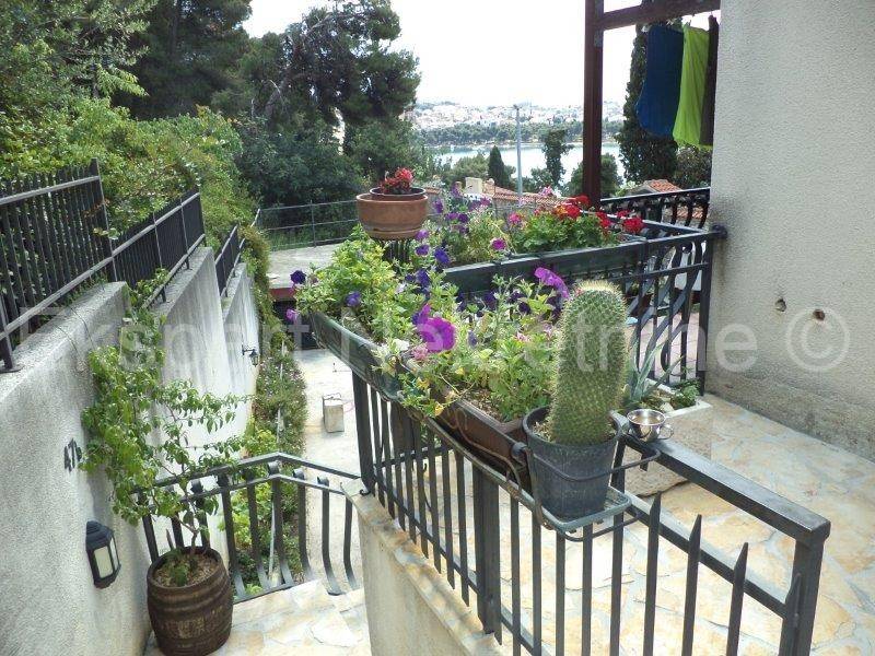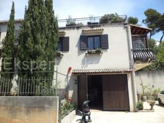 Trogir, Čiovo, Saldun, detached house 133 m2, on a plot of 474 m2, only 60 m from the sea and only 500 m from the center of Trogir. The house is newly built and consists of a large garage of 32 m2 on the ground floor, and a large four-room apartment with a large loggia above the garage with an area of 107 m2, and above this apartment there is also a large open terrace of approx. 40 m2, from which there is a wonderful view of the sea and the Saldus bay. It is also possible to upgrade. There are several parking spaces around the house. Excellent location near the sea and 5 minutes on foot from the Trogir waterfront. Ownership in order.