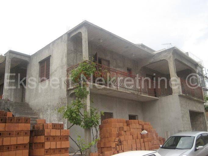 Trogir, Bilin Dolac, detached house of 130 m2 on two floors (lower floor 40m2 and upper 90 m2). The house is located on a plot of 480 m2, with a beautiful view of the old town of Trogir and the sea. The house is in a state of high roh-bau with connected electricity and water. Possible upgrade. He has a building permit. Ownership neat.