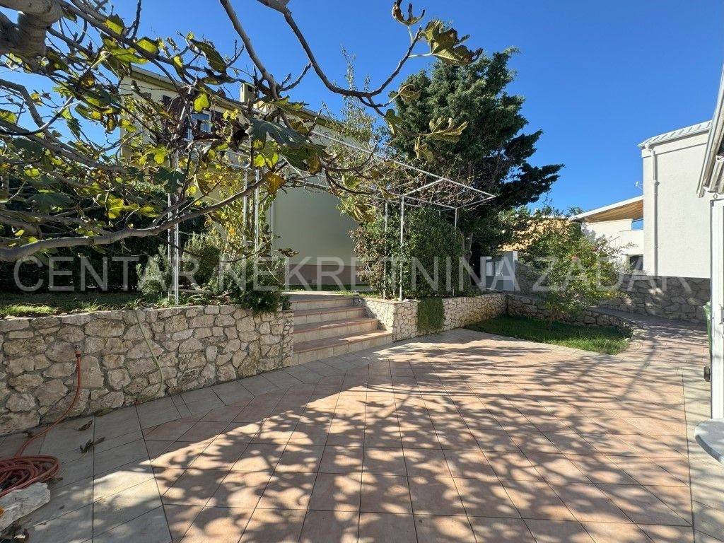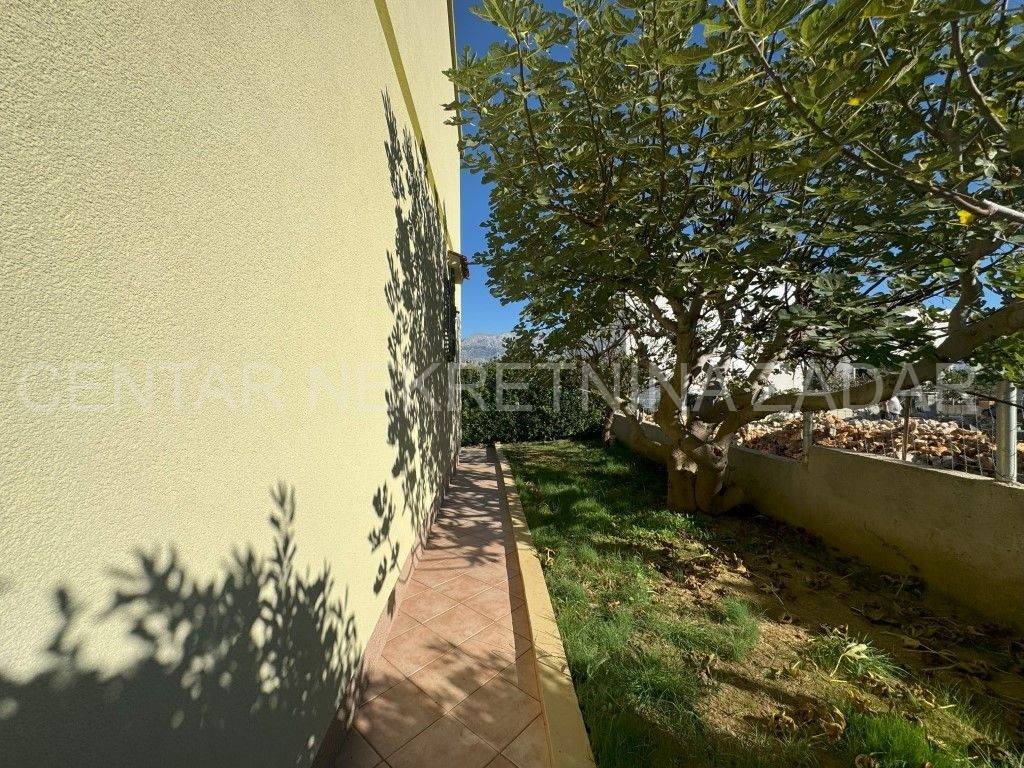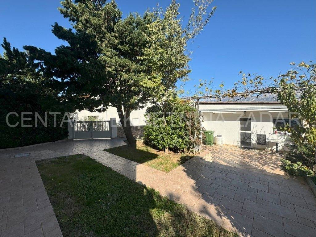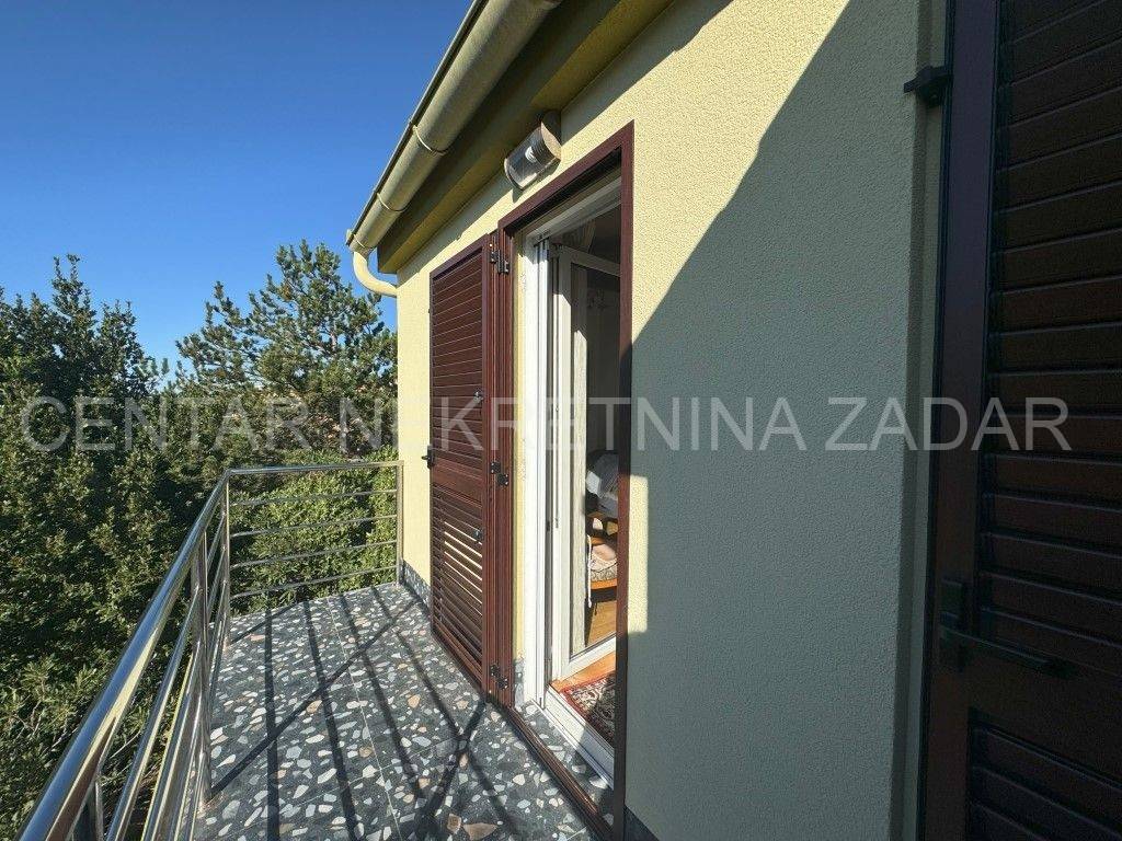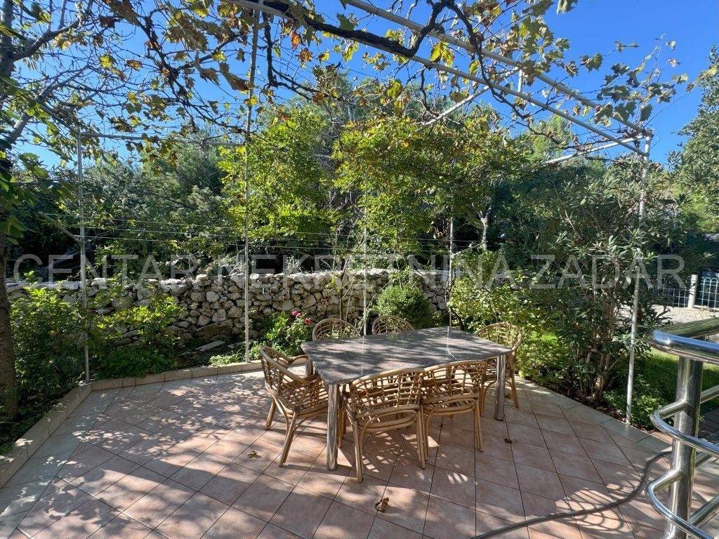 A house with a sea view is for sale in Ražanac, 21 km from Zadar. It was built in 1997 on a plot of land of 785 m2. It is surrounded by a landscaped garden with fruit trees, decorated with various herbs and olives. It consists of a basement, ground floor and first floor. The ground floor consists of a large kitchen with dining room, bathroom, living room, hallway and two outdoor terraces. An internal staircase leads to the floor where there is a bathroom and three bedrooms, each with its own balcony. In the basement there is a storage area and a boiler room. In the attic there is a small attic with organized storage space. The facade and roof were renovated in 2020. The house has aluminum joinery with built-in mosquito nets, central heating and is air conditioned. It is connected to a septic tank, and has proper connections for water, electricity, internet and satellite TV. The entire property is surrounded by a stone wall, and there are two garages with a summer kitchen, a bathroom, an outdoor terrace and an outdoor shower. The house is sold partially furnished, by agreement with the buyer. It is equipped with high-quality materials that guarantee satisfaction and simplicity in maintenance and use. It is 600 meters from the sea. For additional information, contact us at 099 393 6040.