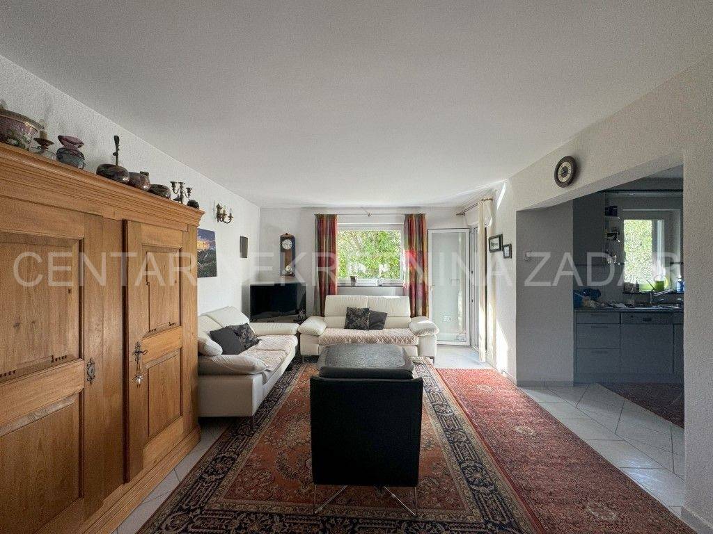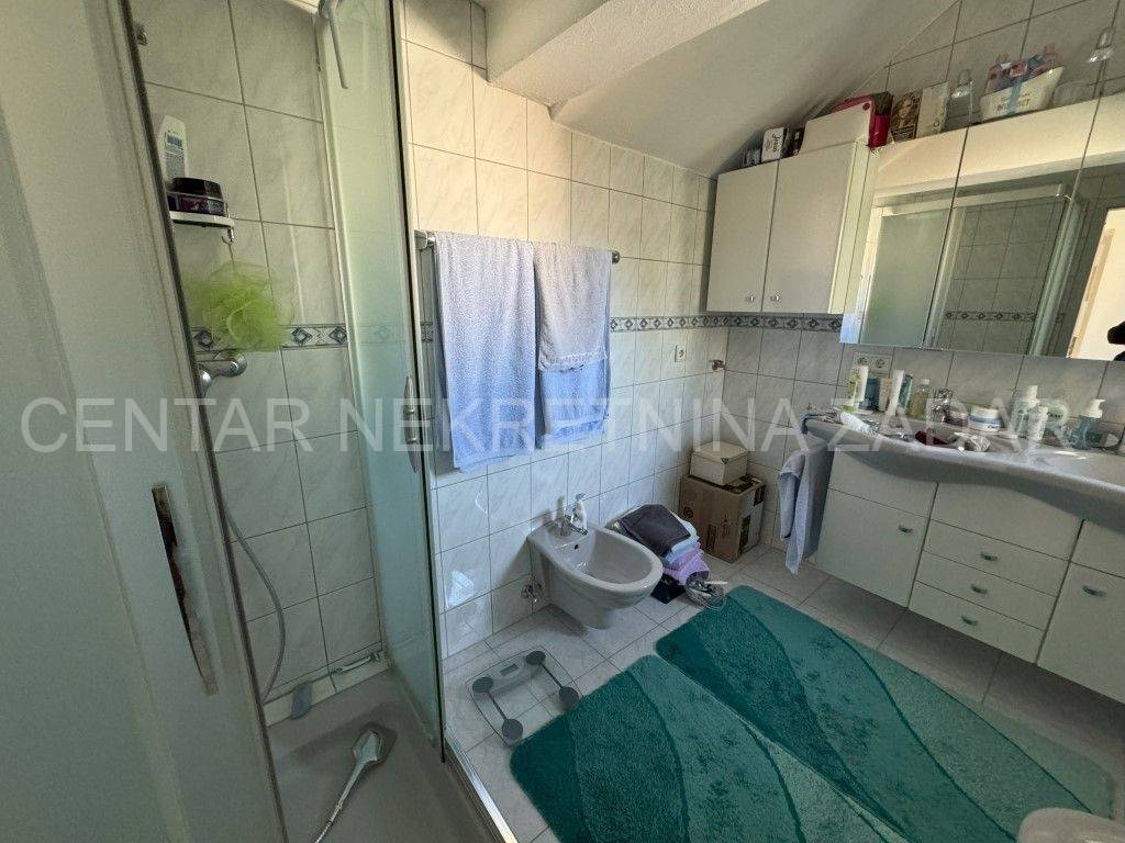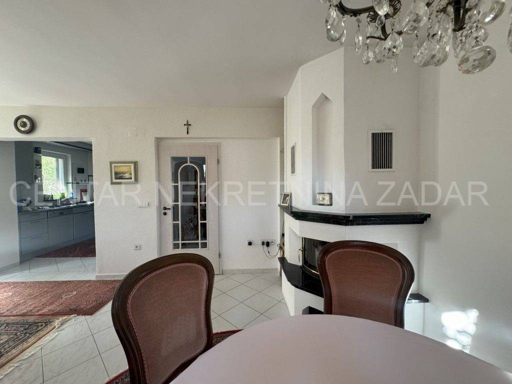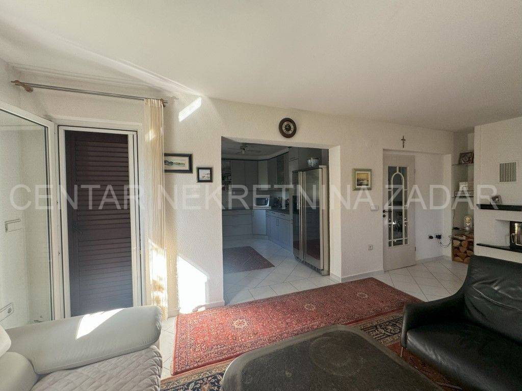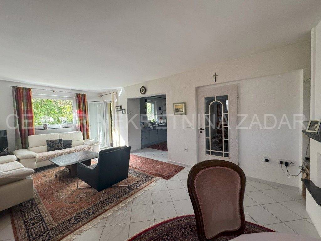 A house with a sea view is for sale in Ražanac, 21 km from Zadar. It was built in 1997 on a plot of land of 785 m2. It is surrounded by a landscaped garden with fruit trees, decorated with various herbs and olives. It consists of a basement, ground floor and first floor. The ground floor consists of a large kitchen with dining room, bathroom, living room, hallway and two outdoor terraces. An internal staircase leads to the floor where there is a bathroom and three bedrooms, each with its own balcony. In the basement there is a storage area and a boiler room. In the attic there is a small attic with organized storage space. The facade and roof were renovated in 2020. The house has aluminum joinery with built-in mosquito nets, central heating and is air conditioned. It is connected to a septic tank, and has proper connections for water, electricity, internet and satellite TV. The entire property is surrounded by a stone wall, and there are two garages with a summer kitchen, a bathroom, an outdoor terrace and an outdoor shower. The house is sold partially furnished, by agreement with the buyer. It is equipped with high-quality materials that guarantee satisfaction and simplicity in maintenance and use. It is 600 meters from the sea. For additional information, contact us at 099 393 6040.