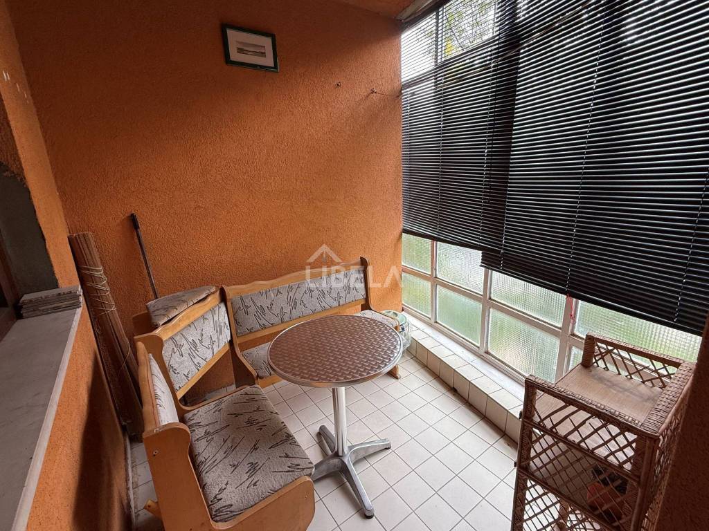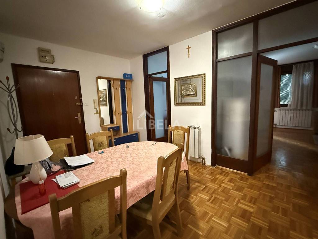 Sastoji se od dnevnog boravka, kuhinje, 2 spavaće sobe kupaone, hodnika i lođe. Tramvase nalazi preko puta zgrade.
