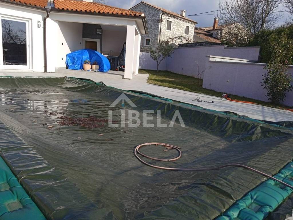 Na parceli veličine 946 m2, izgrađena u interesantnom obliku slova 'L', pruža potpunu privatnost te uživanje pored bazena bez pogleda susjeda.