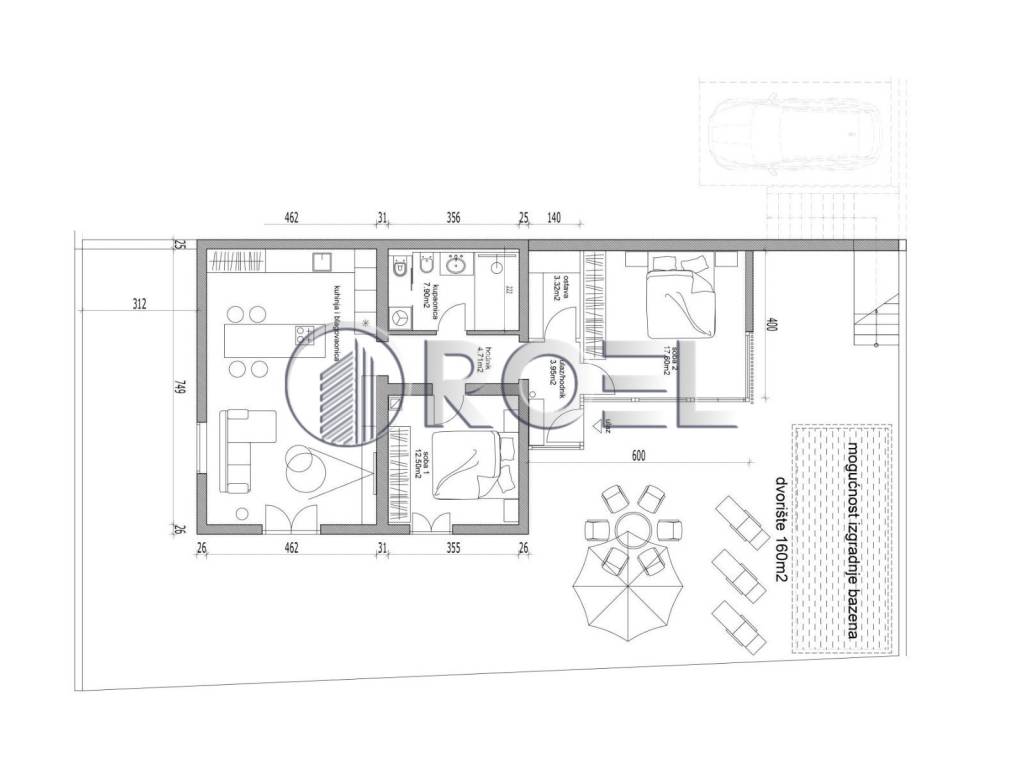 For sale is an apartment S2 with a total area of 88 m + 150 m2 garden, located in a quiet and green environment of Gračani. The apartment consists of an entrance hall, bathroom, kitchen, living room and 2 bedrooms.