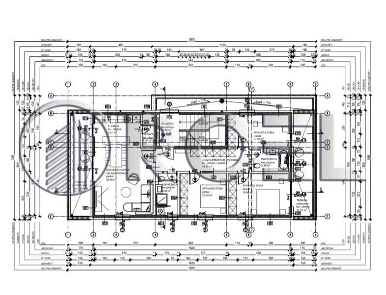 Četverosobni stan na prvom katu moderne novogradnje u okolici Samobora, NKP 124.89 m. Savršenog je rasporeda. Stan se sastoji od ulaznog hodnika, ostave, kuhinje, dnevnog boravka s blagovaonom, tri spavaće sobe te dvije kupaonice s wc-om. Stambena površina stana je 101.86 m2. Stanu pripadaju dvije natkrivene terase površine identične veličine 13.12 m2 ( 6.56 m2), spremište 3.39 m2 ( 1.695 m2) te dva natkrivena parkirna mjesta veličine 13.7 m2 ( 4,11 m2). Orijentacija stana je istok i zapad. Kupcu se daje mogućnost da sudjeluje u uređenju unutarnjeg dijela ukoliko želi sam birati parket, keramiku i sanitarije. Grijanje u stanu će biti podno na plin.