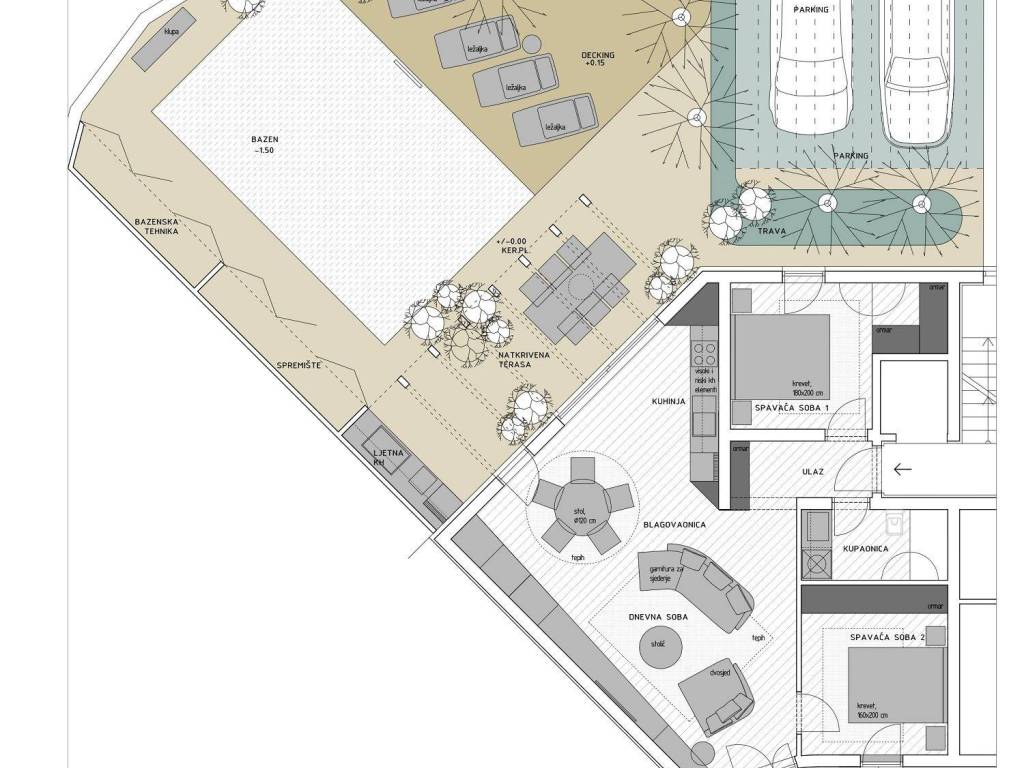 For sale is an exclusive apartment on the ground floor of a modern building, located in a quiet and green part of Poreč. It is ideal for a comfortable family life, vacation or as an investment for tourist rental.