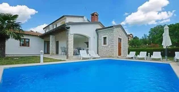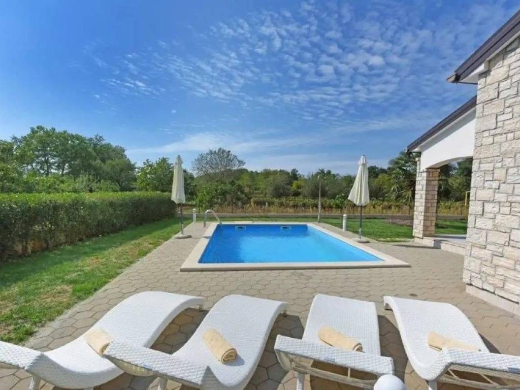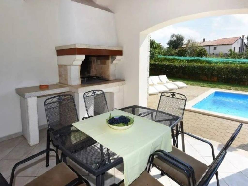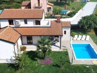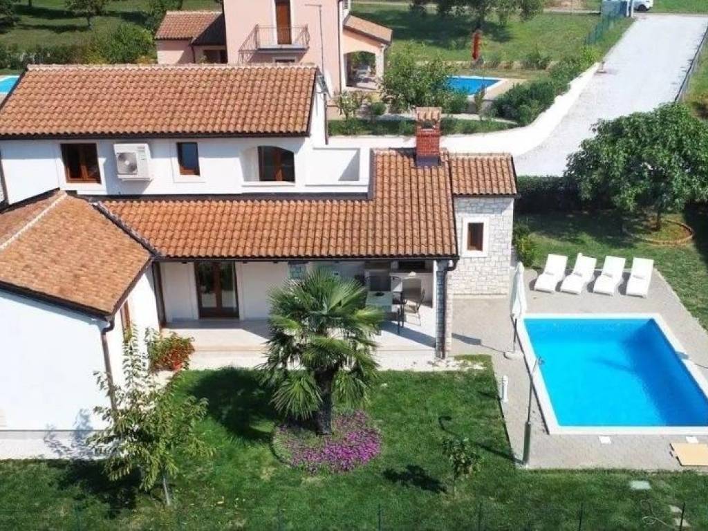 In the vicinity of Poreč, in a very beautiful location, surrounded by nature, a detached house with a swimming pool is for sale.The house with its 140 m2 extends over the ground floor and first floor, and is located on a fenced plot of 598 m2.The ground floor contains an open space area with an equipped kitchen with a dining room and a large living room with a beautiful fireplace that provides comfort in the winter months, with access to a covered terrace where there is a grill area with a fireplace.On the ground floor there is one bedroom with a bathroom.On the first floor there are two more comfortable bedrooms that share one bathroom and a large terrace for enjoyment.
