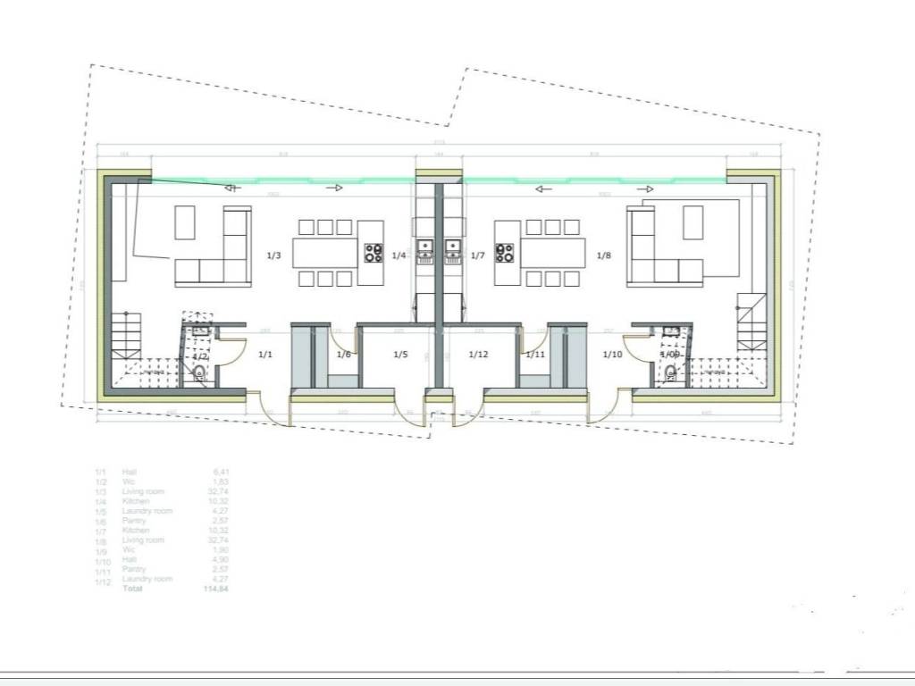 In a pine forest only 700 m from the sea, I am selling 11500 m2 of land with a project and building permit for the construction of a semi-detached house of 255 m2.the foundations of the house have already been built.