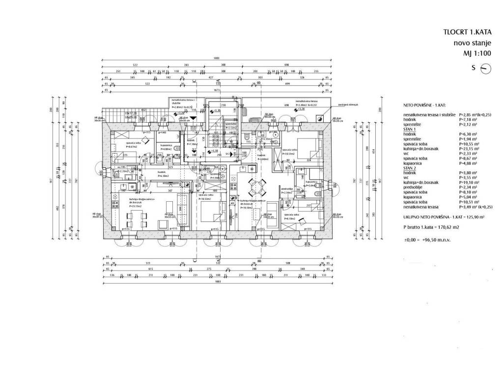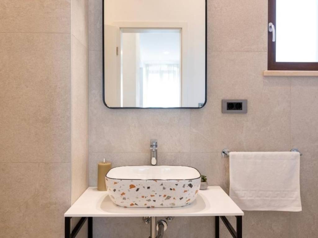 An apartment for sale near the beach and the sea in a new building in a building with only 4 apartments.The apartment is located on the 1st floor and consists of an entrance hall, a kitchen with a dining room and a living room, two bedrooms and a bathroom and a toilet with a laundry room.The apartment is fully furnished and is being sold as such.Heating and cooling via air conditioning in all rooms and underfloor heating in the bathrooms.