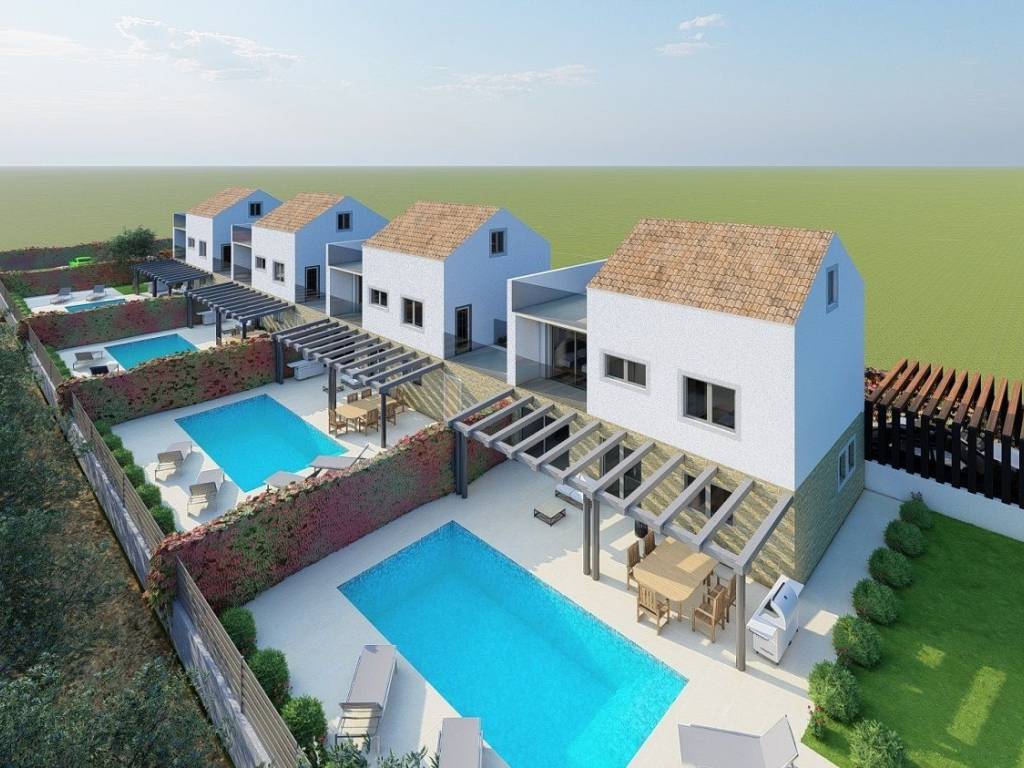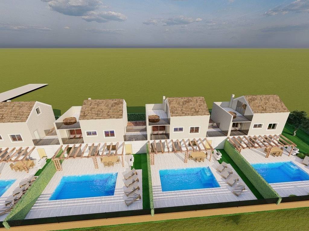 Near Porec, 4 houses in a row are for saleStart of construction on 09/22.Each house has approximately 180 m2 and consists of 3 bedrooms, 2 bathrooms, toilet, kitchen with dining area and living room, storage room, pantry, terrace, yard with pool and 2 parking spaces.The price of indoor villas is 580,000.00 euros turnkey, and the price of the final ones is 590,000.00 euros