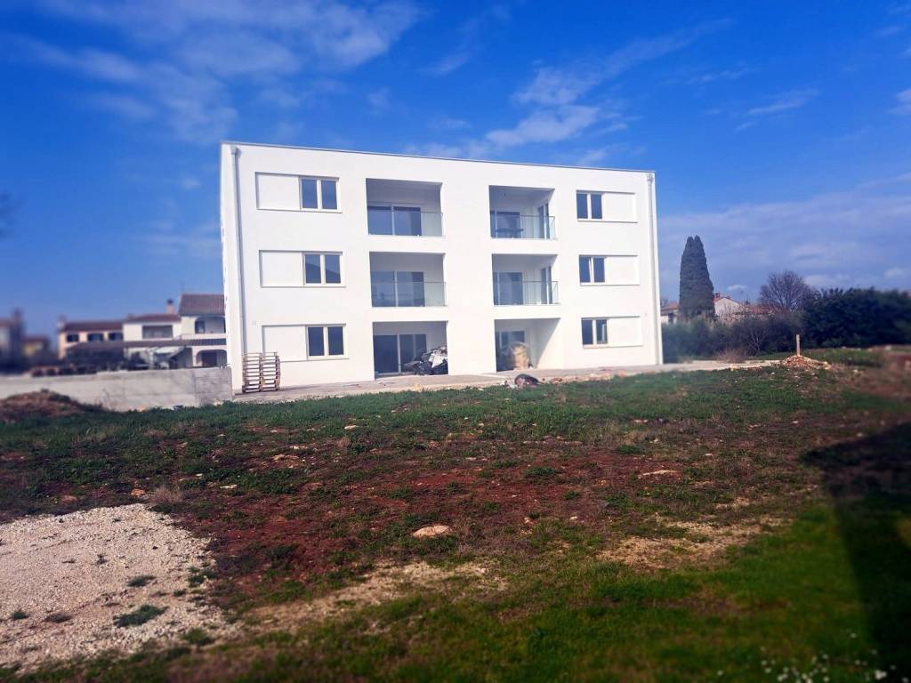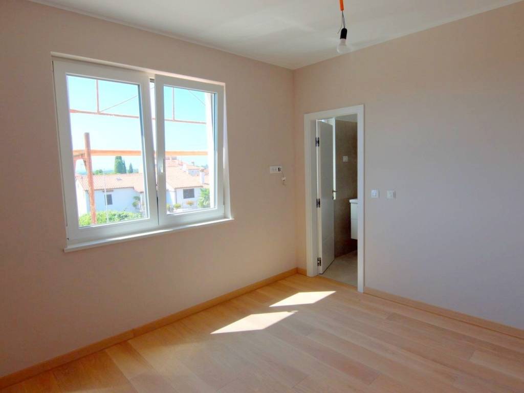 In the vicinity of Poreč, in a quiet and attractive location just 600 m from the beach, an apartment is for sale on the 1st floor, marked B, in a building with only 5 apartments.The apartment consists of an entrance hall, three bedrooms each with their own bathrooms, a kitchen with a dining area and a living room with access to a spacious covered terrace with a sea view.There is electric underfloor heating in all rooms, except in the bedrooms, where air conditioning is provided.The apartment also includes a storage room on the ground floor of the building and two parking spaces.