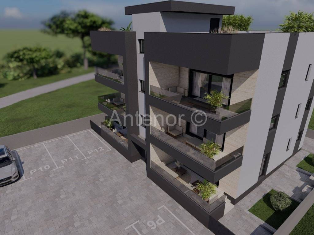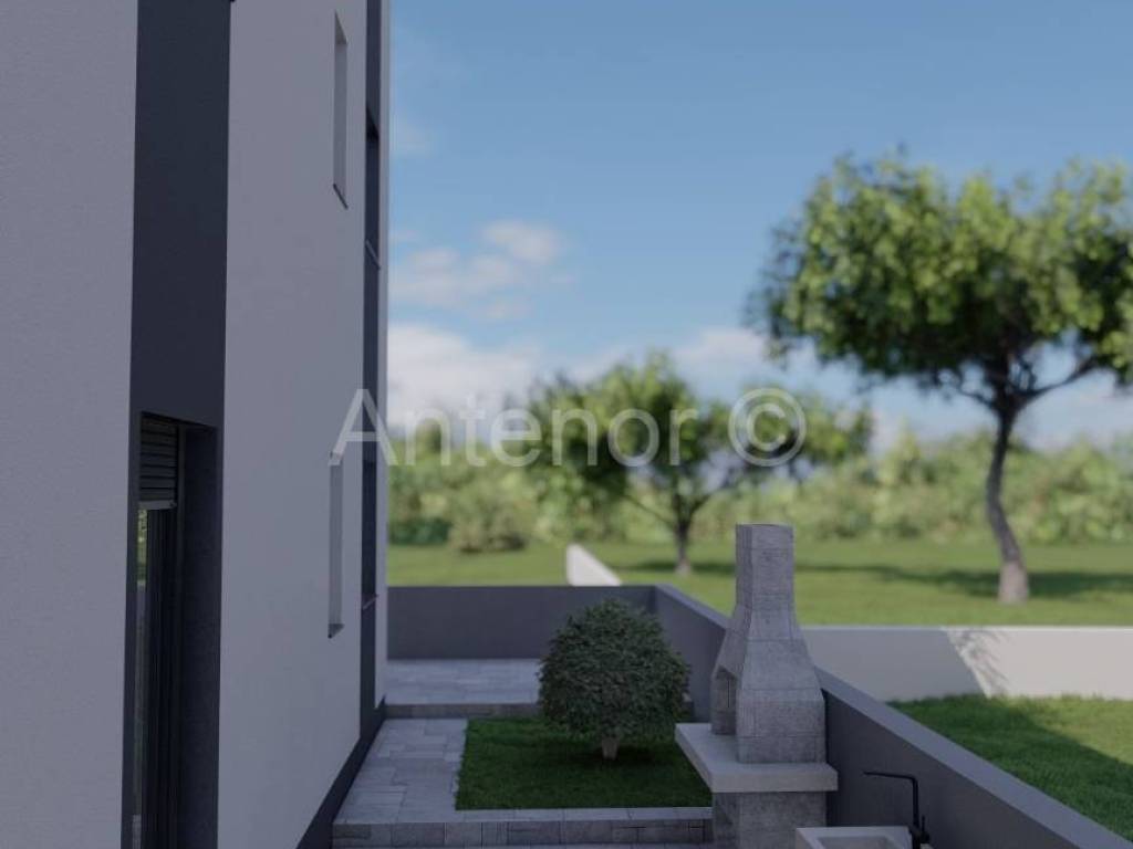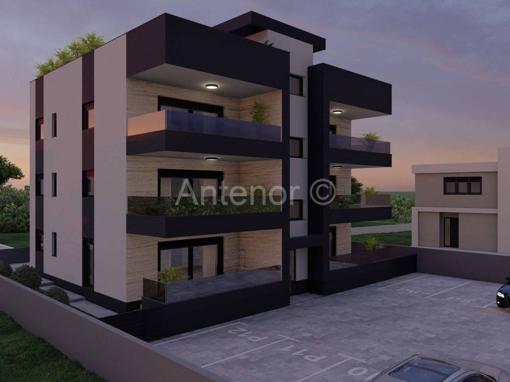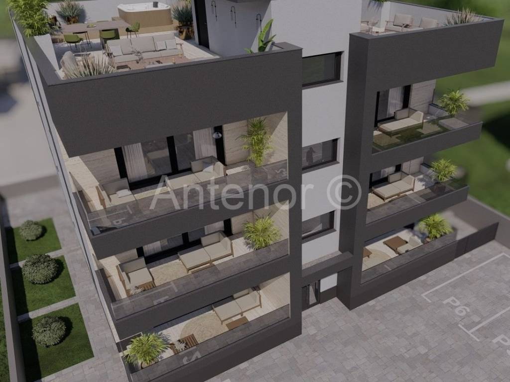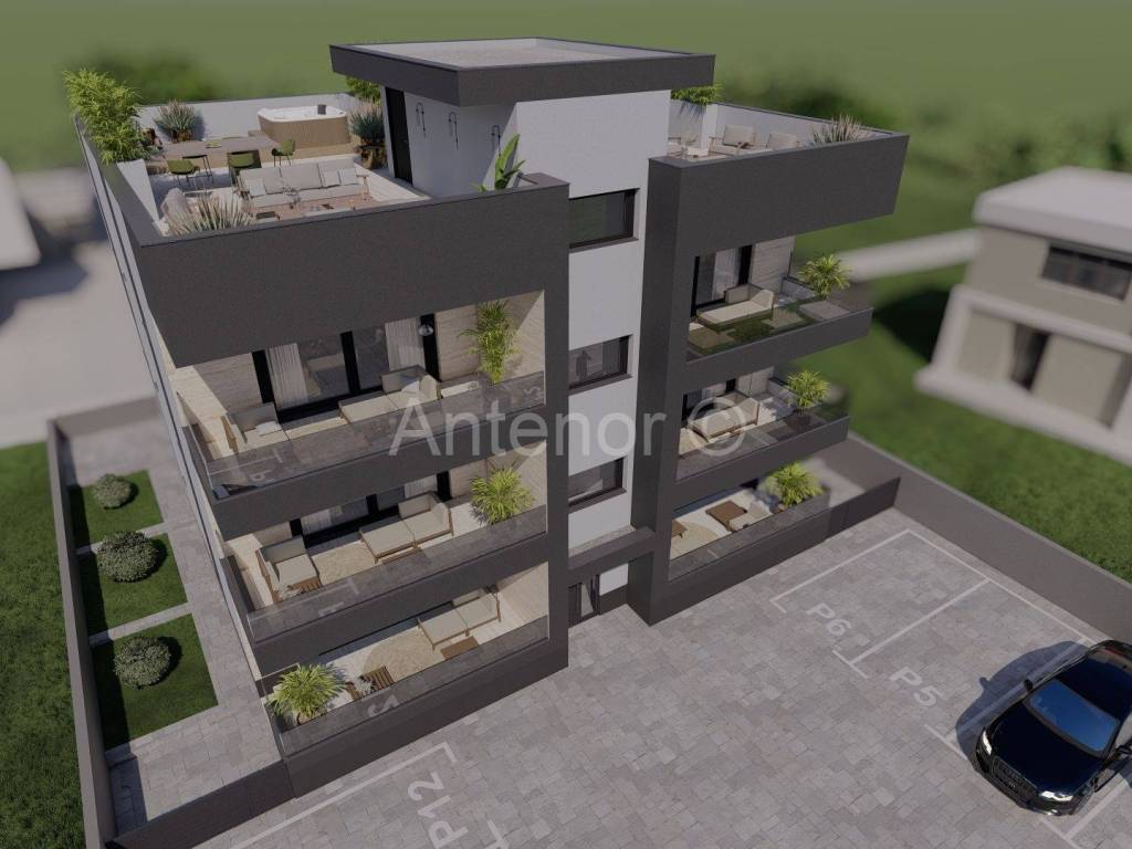PRIVLAKA - apartman u centru mjesta. Apartman se nalazi na 2. katu, a sastoji se od hodnika, dnevnog boravka, blagavaone, kuhinje, praonice, master sobe sa vlastitom kupaonicom i wc-om te još jedne sobe i zajedničke kupaonice sa wc-om, terasa i krovna terasa od 83 m2. Iz stana i krovne terase pruža se pogled na more. Apartmanu pripadaju dva parkirna mjesta.