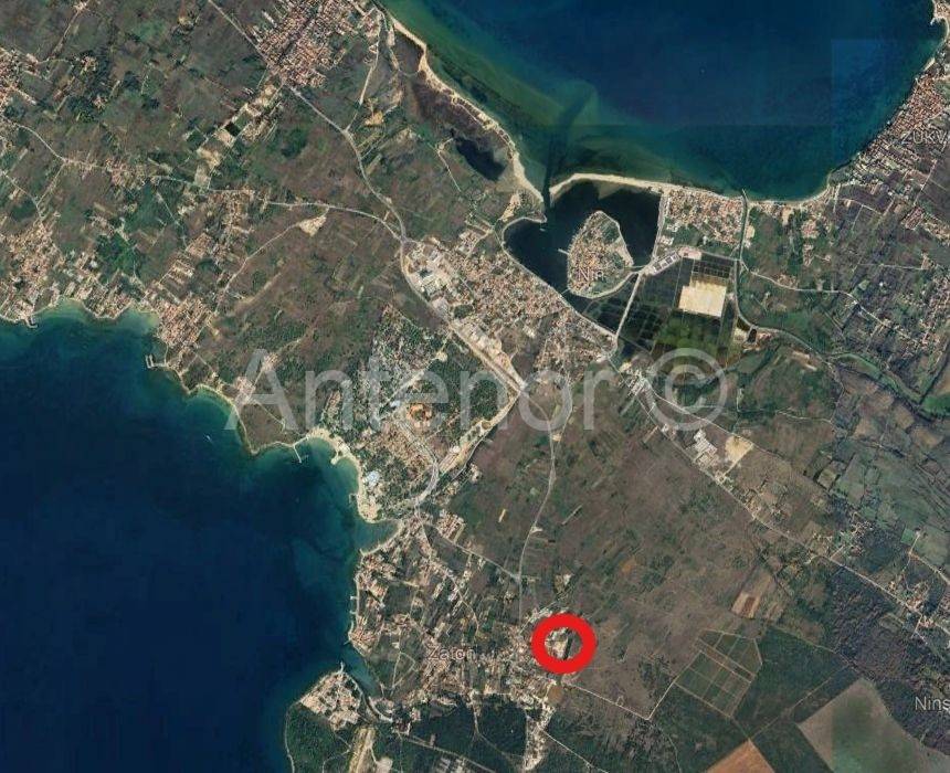 NIN/ZATON - građevinsko zemljište 509 m2. Zemljište je dimenzije cca 19 m x 25 m. Za navedeno zemljište postoji projekt za izgradnju kuće sa bazenom. Kuća se sastoji od prizemlja i kata. U prizemlju se nalazi ulaz, wc, izba, kuhinja i dnevni prostor, terasa sa izlazom na dvorište i ljetnu kuhinju. Na katu se nalaze 4 spavaće sobe, 3 kupaonice i hodnik.