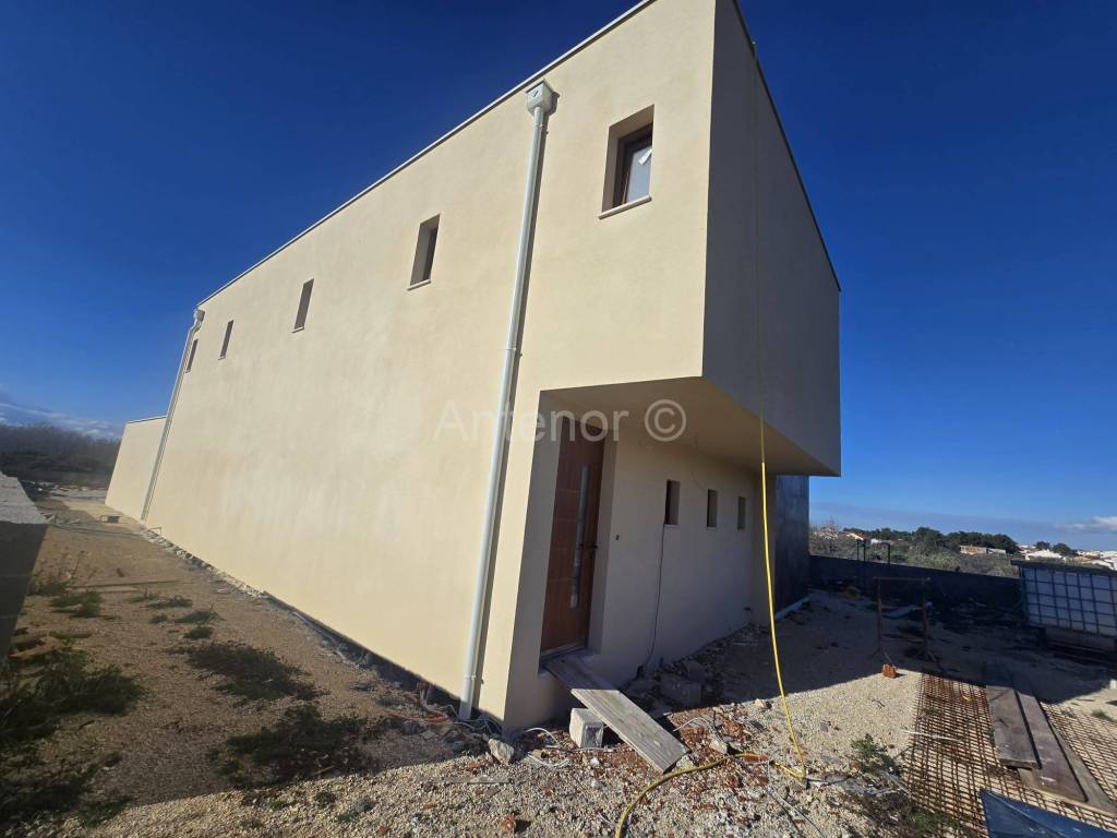 Kuća je udaljena od mora 1 km, nalazi se na mirnoj lokaciji sa koje se pruža predivan nesmetan pogled prema moru.