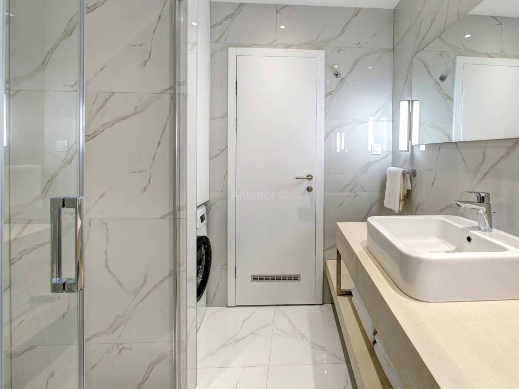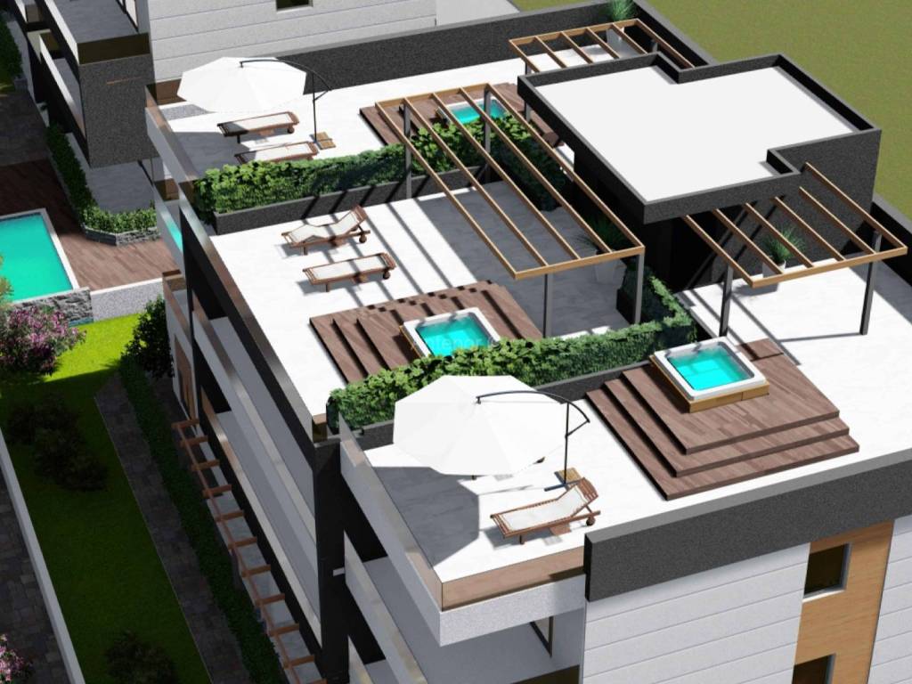 Apartman je opremljen bogatom opremom ( smart inverter klima uređajima, podno grijanje kupaonica, šesterokomornom vanjskom stolarijom, parketom i keramikom I klase, posjeduje pripremu za smart instalaciju, video portafon ). U dvorištu apartmanske zgrade se nalazi zajednički bazen, te punionica električnih vozila. Zgrada je sagrađena kvalitetnim materijalima u skladu sa projektnom dokumentacijom.