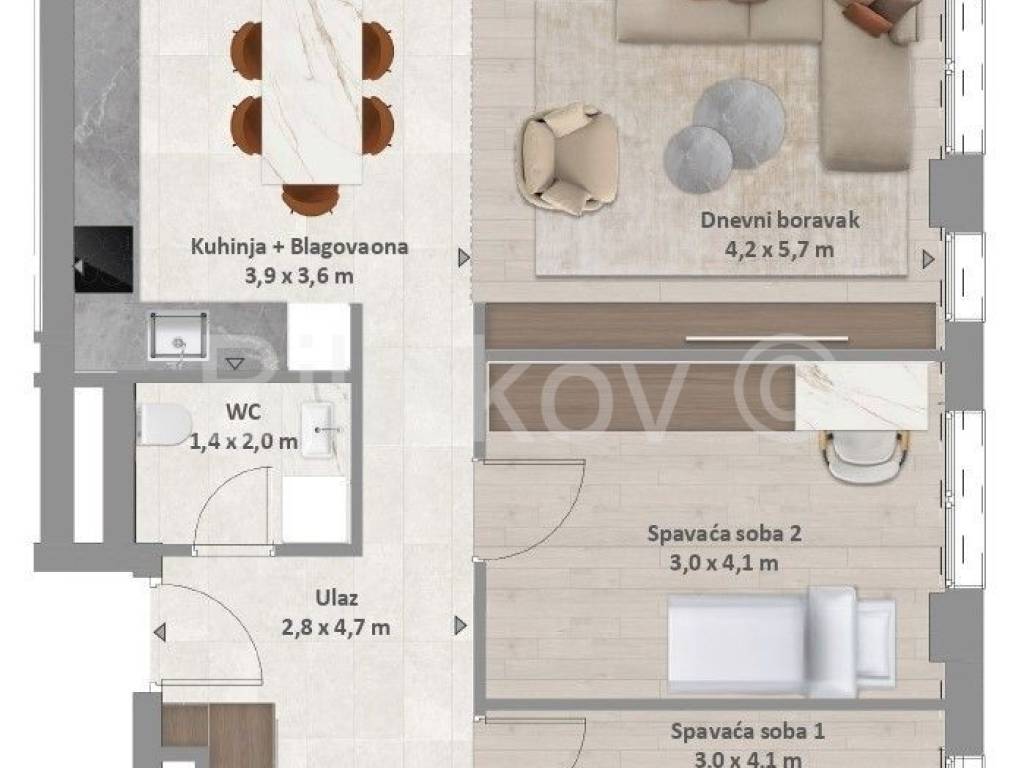 The buildings will stand out with their exterior, and the special feature is the interior decoration of the building as well as the careful landscaping. A spacious lobby with a 24-hour reception, a special room for picking up packages, a gym for residents available by appointment, are just some of the extraordinary services you receive and indicate the uniqueness of this project.