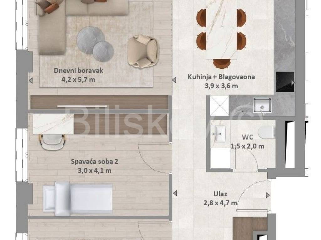 The buildings will stand out with their exterior, and the special feature is the interior decoration of the building as well as the careful landscaping. A spacious lobby with a 24-hour reception, a special room for picking up packages, a gym for residents available by appointment, are just some of the extraordinary services you receive and indicate the uniqueness of this project.