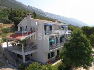 Omiš Riviera, Marušići, apartment building with sea and island views.The duplex house has a usable area of 235 m2 + balconies, loggias, storage rooms, covered terrace and summer kitchen, with an area of 117 m2, which is 291 m2 in total.The house has 3 floors and is located on a plot of 442 m2.On the ground floor there is an apartment of 80 m2 with a living room, kitchen, dining room, 3 bedrooms and 2 bathrooms + storage room of 25 m2.1st floor: apartment A: 43m2 (bedroom, living room, kitchen, bathroom and loggia) + covered terrace 27m2.- apartment B: 37m2 (living room, kitchen, bedroom, balcony and loggia with sea view + summer kitchen 8m2)2nd floor: 2 apartments, each 37 m2, consisting of a bedroom, living room, kitchen, bathroom, balcony and loggia with sea view.Special features: balconies, loggias, storage rooms, covered terrace + summer kitchen - a total of 117 m2.In front of the house there is a plot of 150 m2 which is used as parking for 6 cars.The cultivated vegetable garden has an area of 340 m2.2 barbecues, one on the ground floor, one on the 1st floor.There was a purifier.Suitable for tourism, the owners have been running the business for 20 years.