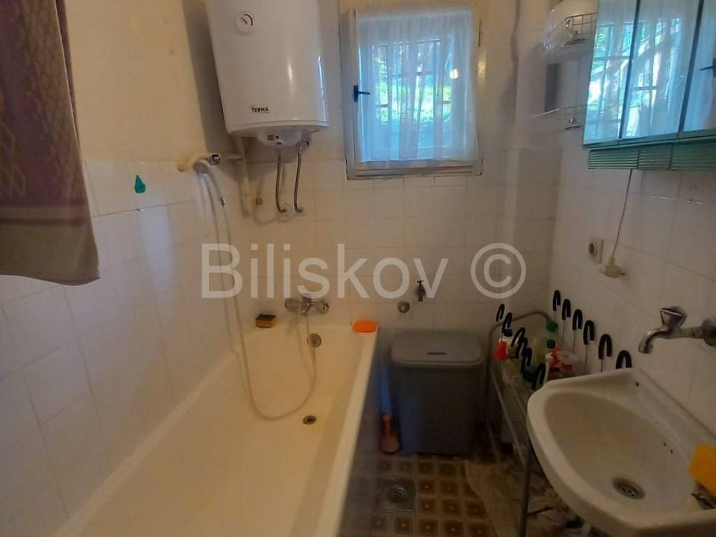 On the ground floor there is a two-room apartment consisting of a kitchen, a small dining room, a large bedroom, a bathroom and a separate toilet. The apartment leads to a large terrace.