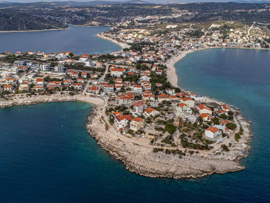 Prema dozvoli, moguće je izgraditi manju stambenu zgradu etaža podrum, prizemlje, prvi kat i potkrovlje. U podrumu je garaža s 4 parkirna mjesta. Na svakoj od nadzemnih etaža po projektu se nalaze po dva stana. Iz svakog stana nesmetani pogled na more i otoke.Uvid u detaljnu dokumentaciju u agenciji.