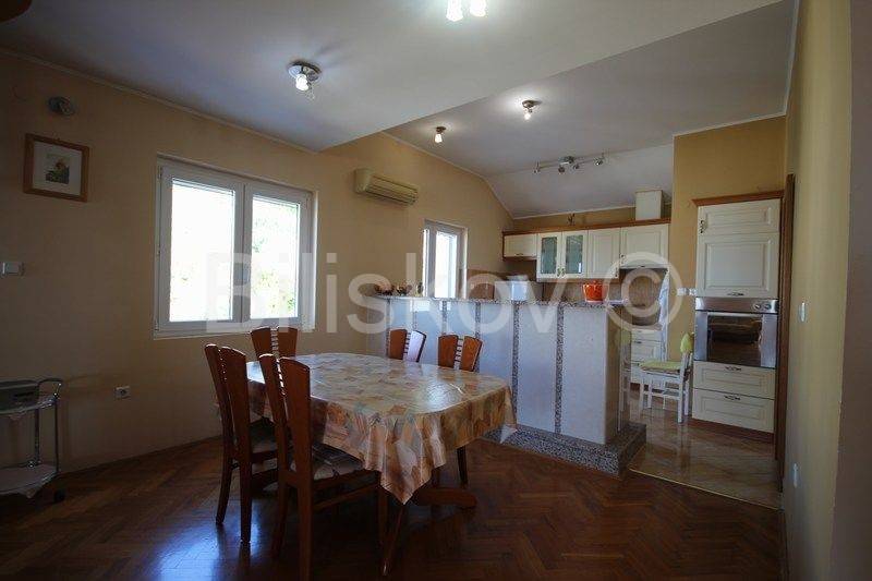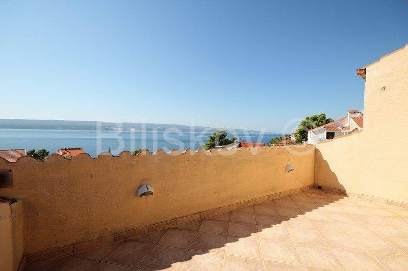 In the small tourist town of Medići on the Omiš Riviera, a business and residential building with an area of approx. 400m2 on a plot of 887m2 is for sale.The building consists of a basement, ground floor, first floor and high attic.In the basement of the building there is a tavern with a chimney, a kitchen and a room for guests.Ground floor: restaurant with kitchen, dining room, 2 bathrooms and outdoor terrace.1st floor: comfortable three bedroom apartment of approx. 139m2 with 3 bedrooms, living room with kitchen and dining room, toilet and bathroom and a spacious loggia with a view of the sea.In the living room there are spiral stairs that lead to a high attic.The high attic has an area of approx. 40m2 (the room is decorated but not furnished).Every room in the house is air-conditioned.Behind the house are auxiliary facilities such as storage.Large parking lot in front of the house for 8-10 cars.