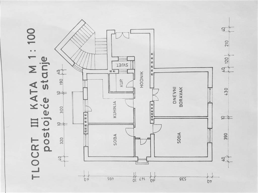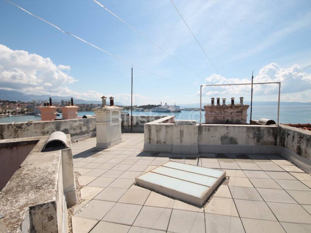 The building was built in 1938 and the apartment was renovated and maintained 30 years ago. The ceiling height is 4.35 m and the apartment is extremely spacious and bright. The kitchen offers a view of Marjan on one side and the sea across the living room.