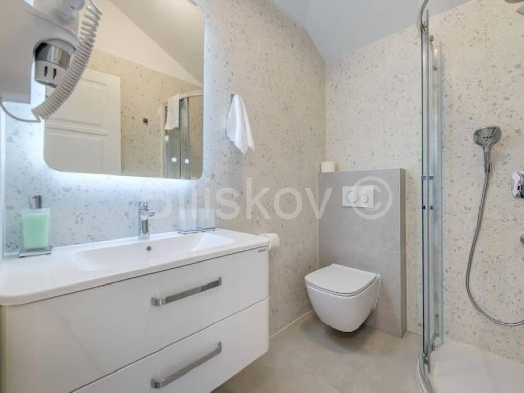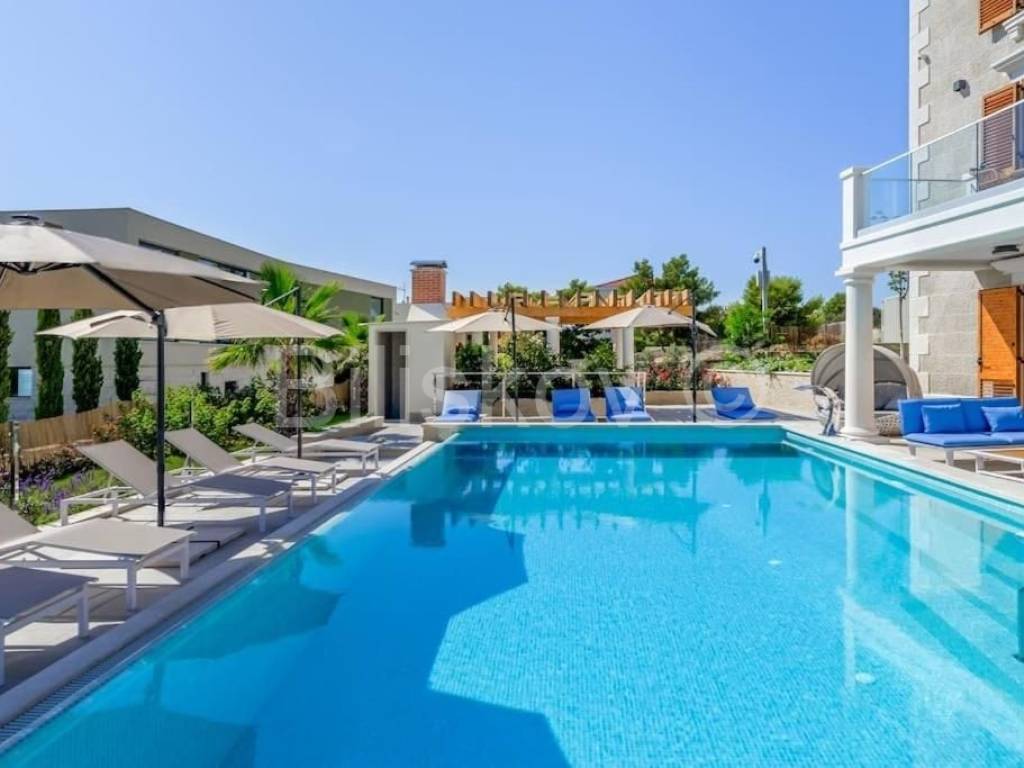 U mirnoj uvali, smjestila se ova luksuzna, elegantna nekretnina površine cca. 500 m2 na parceli površine 597 m2, a prostire se na tri etaže.