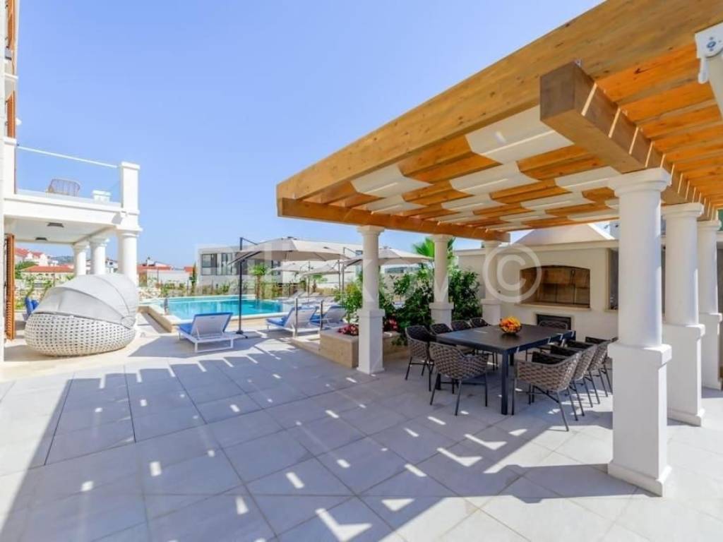 Ljetna kuhinja s kaminom i blagovaonicom idealna je za večernja druženja uz zalaske sunca.