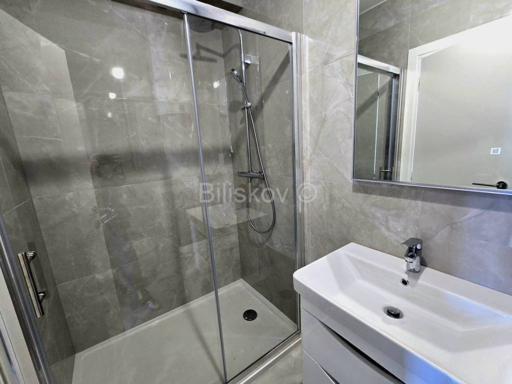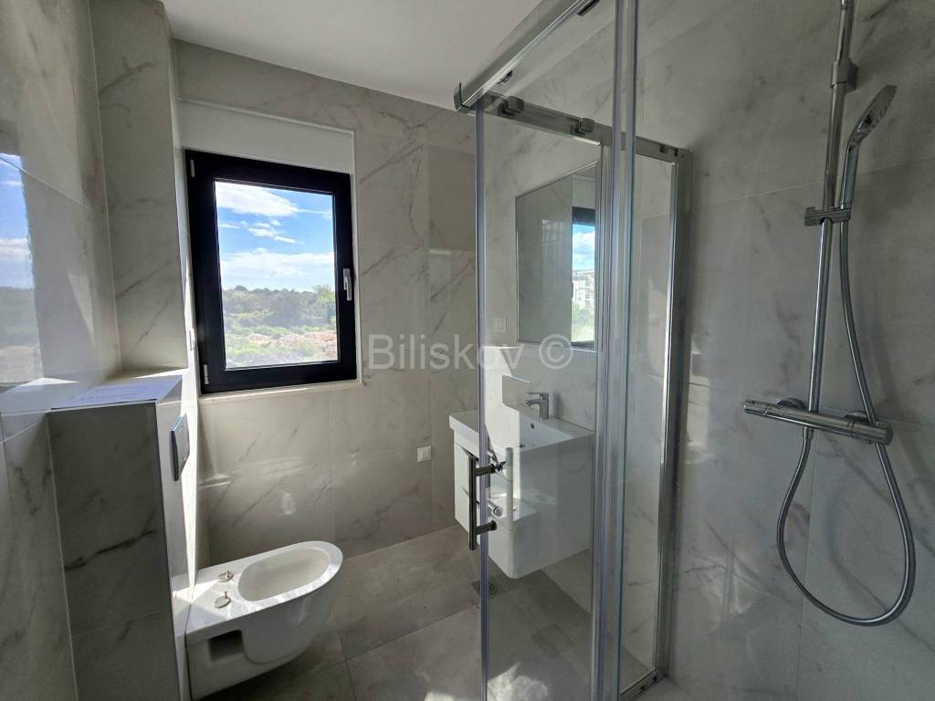 Stqn se sastoji od 3 sobe, kuhinje, blagovaonice, 2 kupatila, dnevnog boravka, terase i krovne terase . Prekrasan otvoreni pogled na more i okolicu. Vrlo kvalitetna i moderna gradnja.