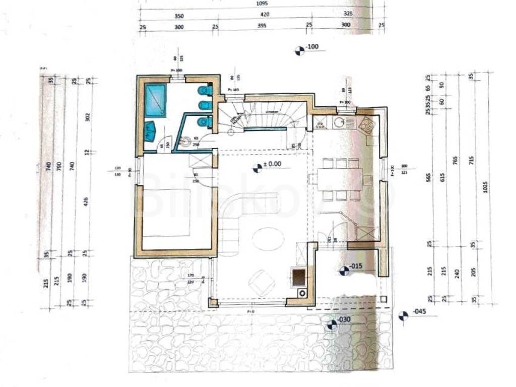Prizemlje komforan dnevni boravak, kuhinja s blagovaonicom, spavaća soba s kupaonicom, zasebni wc, natkriveni balkon
