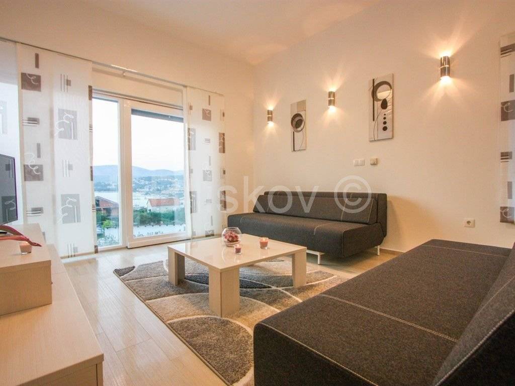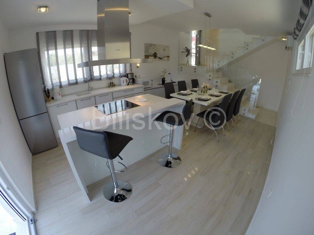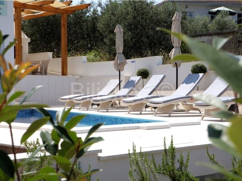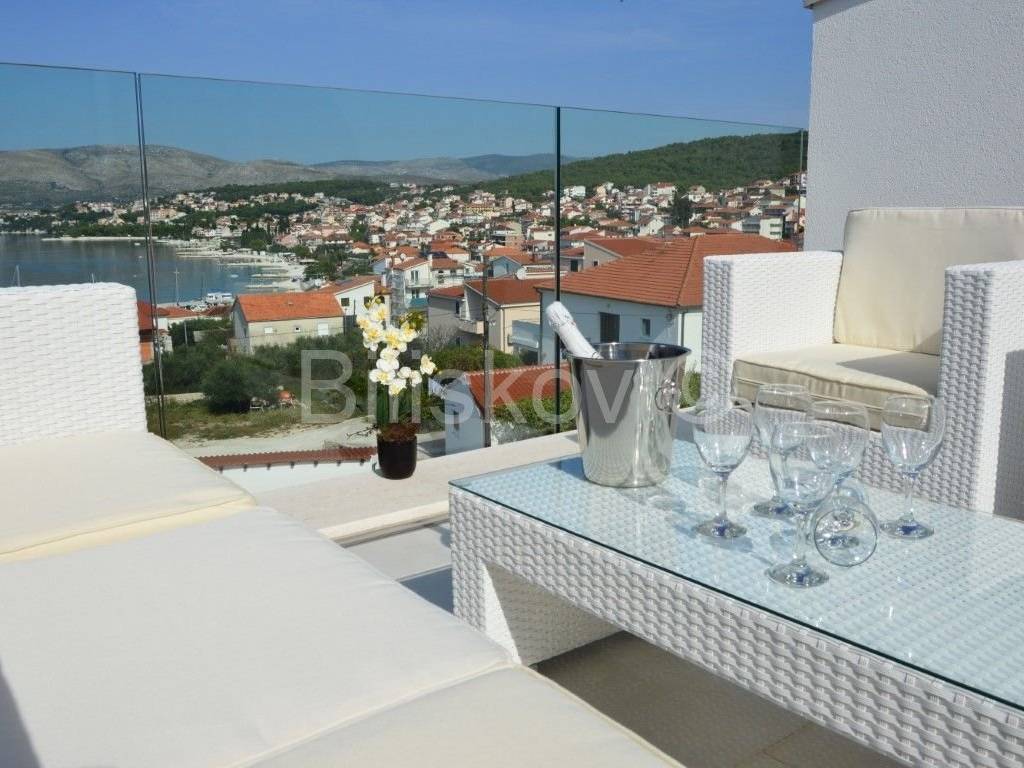 Okrug, Okrug Gornji, samostojeća villa površine cca. 200 m2 na 3 etaže, na parceli površine 466 m2. Moderna nekretnina atraktivnog eksterijera, proteže se na 3 etaže i 200 m2 stambenog prostora. Villa elegantnog uređenja kompletno je opremljena i namještena a sastoji se od 3 spavaće sobe, 3 kupaonice, kuhinje sa blagovaonom i dnevnim boravkom, fitness centra. Lijepo organizirana okućnica ville sastoji se od modernog bazena sa sunčalištem i ležaljkama, vanjske terase i autentičnog zelenila kao i terase sa kaminom za nezaboravna druženja na otvorenom uz prekrasan pogled na more. Sa otvorenim pogledom na more, okupana suncem i prozračnošću, ova villa nudi maksimalan komfor i visoki standard smještaja tijekom cijele godine. Obzirom na turističku popularnost ovog područja nekretnina ima veliki investicijski potencijal. Može se koristiti za različite namjene ovisno o individualnim potrebama budućih vlasnika. Obzirom da je registrirana za najam budućim vlasnicima nudi mogućnost preuzimanja istog. Do najbližeg restorana i trgovine ima 1 minuta hoda. Zračna luka Split udaljena je svega 6km.
