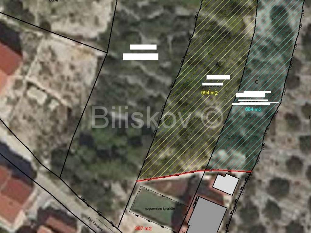 Seget Vranjica. Na udaljenosti 550 m od mora prostire se cca.1678 m2 zemljišta sa prekrasnim pogledom na more, otoke islikovitu uvalu Segeta.