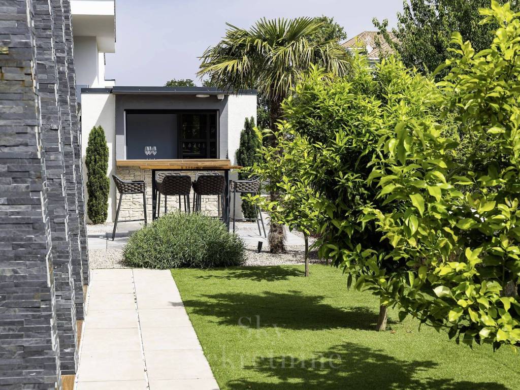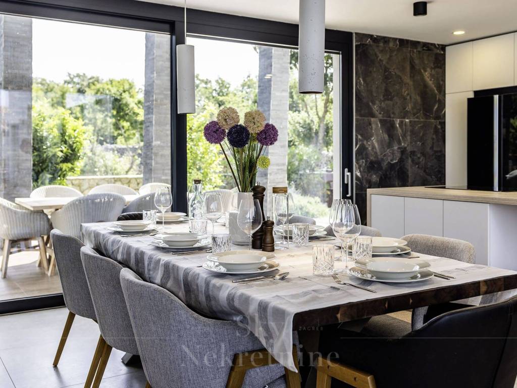 Eksterijer ove luksuzne vile uključuje i prostranu terasu s vrtom, blagovaonicu i ljetnu kuhinju s roštiljem, te parkirno mjesto za 5 automobila.