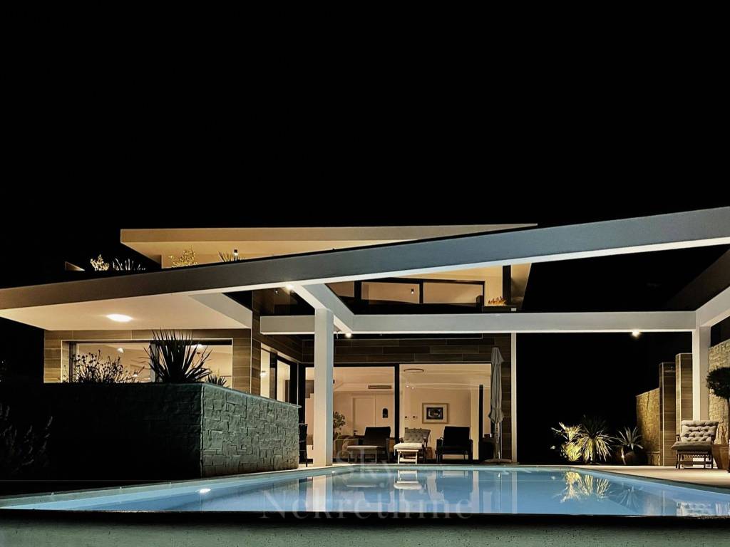 The villa spans a total area of 230 m, featuring two floors with numerous luxury amenities and a private infinity pool measuring 34 m.