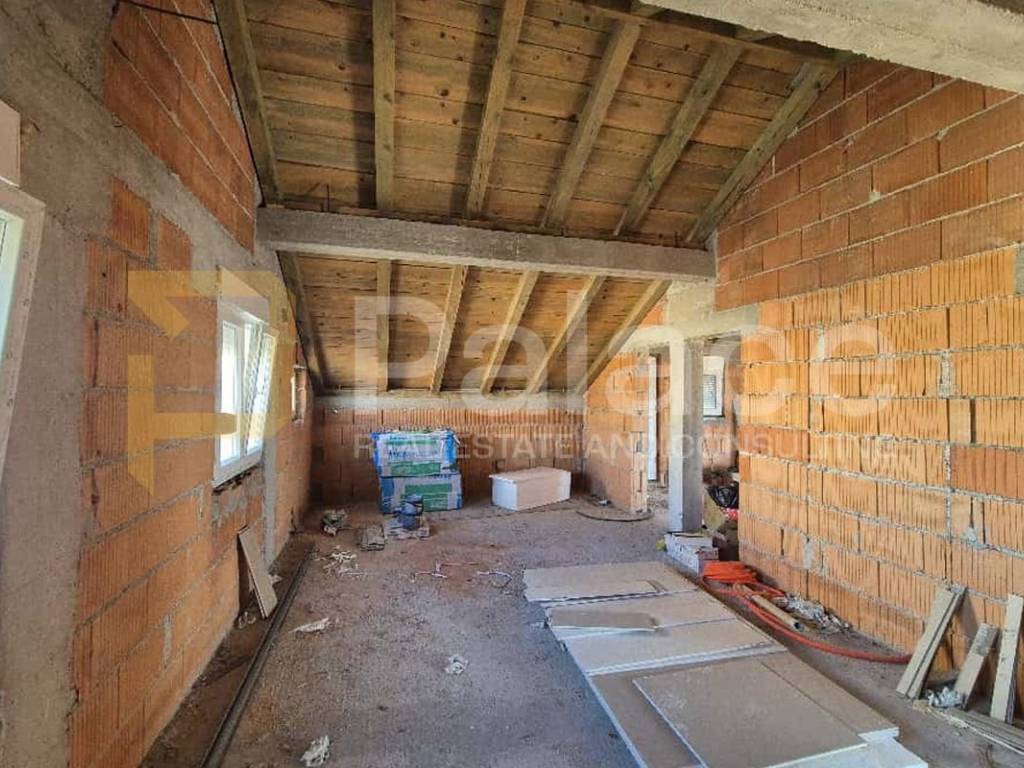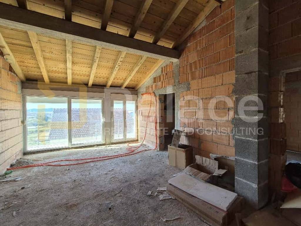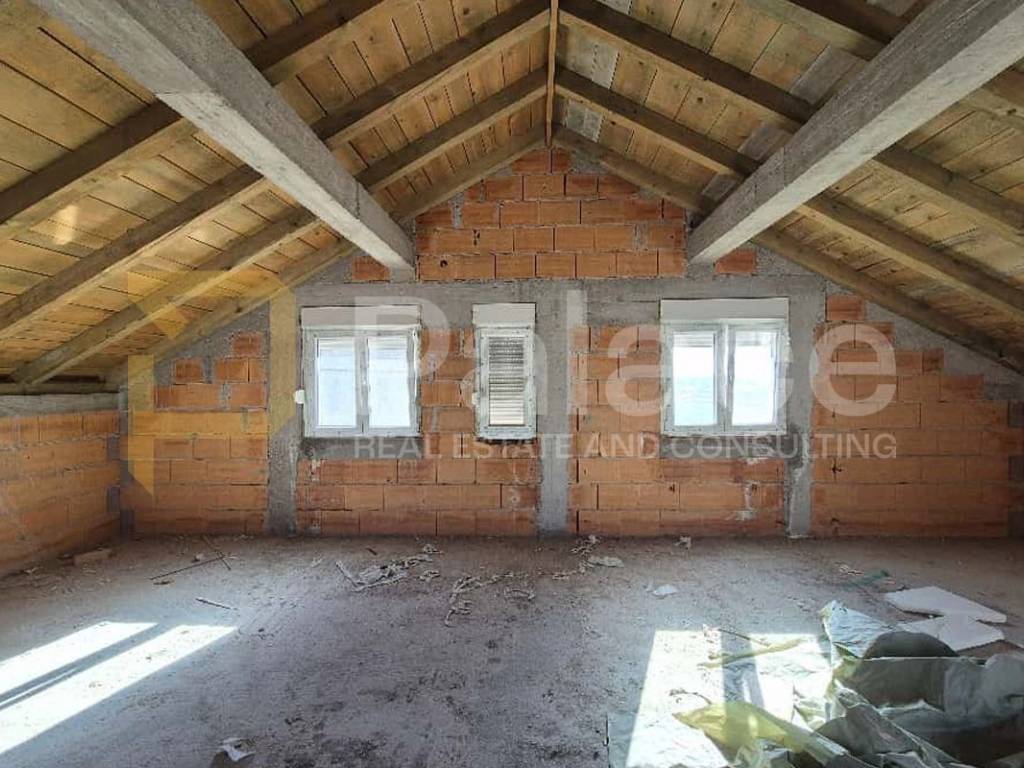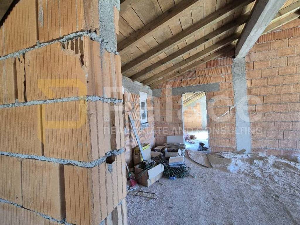 In a divided house, an apartment of 66.15 m2 of living space is for sale. Currently, everything is in brick with PVC joinery installed, but the apartment is designed to have two bedrooms, a kitchen, dining room, and living room in one space, two hallways, a toilet, and a bathroom. It includes an uncovered balcony of 10.07 m2, an entrance platform of 5.27 m2, and one parking space. The apartment is sunny and a great opportunity for creating a family home or a rental property. The property was built in 2011, so the joinery is relatively new, and the façade has been installed on the house. All windows have mosquito nets.