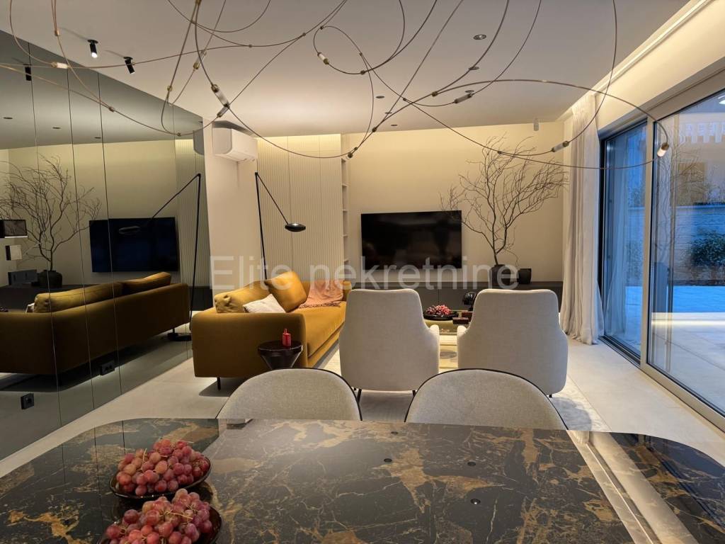OTOK KRK PRIZEMLJE / SUTEREN STAN S BAZENOM I OKUĆNICOM, 200 M OD MORA Prodaje se luksuzan stan u prizemlju modern novogradnje vrhunske kvalitete, na iznimnoj lokaciji svega **200 m od mora** and u blizini svih sadržaja. STAN 1 tlocrtna površina 75.32 m Sastoji se od: * ulaznog hodnika* kuhinje s blagovaonicom i dnevnim boravkom* spavaće sobe 1* spavaće sobe 2* kupaonice* ostave Uz stan pripada: terasa 21.09 mokućnica 201.00 mprivatni bazen 26.00 m2 parkirna mjesta: PM4 and PM5, svako po 13.00 m Visoka kvaliteta gradnje and opreme: * Porotherm opeka + concrete visoke class* Energetski učinkovita fasada (15 cm)* Aluminijska stolarija **Cortizo**, troslojna stakla* Electrical role + power supply* Podno grijanje **Daikin** toplinskom pumpom* Climate uređaji and svakoj prostoriji (**Daikin Multi**)* Talijanska keramika in hrastov troslojni parket* Protuprovalna vrata **Dierre*** TV sustavi u svim sobama + Smart TV* Sigurnosni sustavi: **alarm + videonadzor*** Kvalitetna rasvjeta and vanjski decorative items came* Namještaj po mjeri renomiranih proizvođača* Bosch ugradbeni kućanski uređaji* Profesionalna oprema bazena s automatizacijom Documentation: * Uredna vlasnička documentacija* Mogućnost provjere u zemljišnim knjigama* Etažirano, odmah useljivo Idealno za odmor, stanovanje or investiciju za turistički najam.Ekskluzivna nekretnina modernog dizajna spoj kvalitete, komfora i blizine mora!