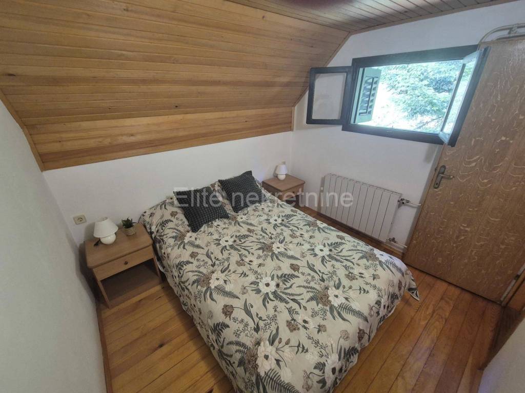 Detached house in Fužine, Lič ideal for relaxation and enjoying nature For sale is a detached house with a total living area of 98 m, with a garden of 288 m, located in a quiet part of Fužine, surrounded by greenery and forests. The house offers the perfect combination of comfort and natural surroundings ideal for living or vacationing. The property consists of a basement, ground floor and first floor, connected by internal stairs: Basement: garage and storage Ground floor: kitchen, living room and bathroom First floor: three bedrooms and an additional toilet Each floor has access to a balcony with a beautiful view of the surrounding forest and greenery, which gives the space a sense of peace and privacy. The house has been recently renovated and fully furnished, ready to move in without additional investment. A perfect opportunity for those looking for peace, nature and comfort whether as a family home or a weekend home for relaxation. The agency commission is charged in accordance with the General Terms and Conditions available on the website www.elite-nekretnine.hr/opci-uvjeti-poslovanja.