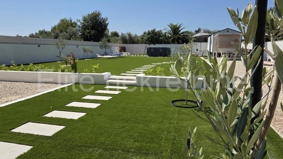 The garden has been carefully landscaped 6 young olive trees, a palm tree, bougainvillea and a cherry laurel have been planted, and the ground is covered with artificial grass that makes maintenance easier. For complete outdoor enjoyment, there is an above-ground pool measuring 5 x 3 m with all the associated equipment and an outdoor shower, perfect for summer refreshments.