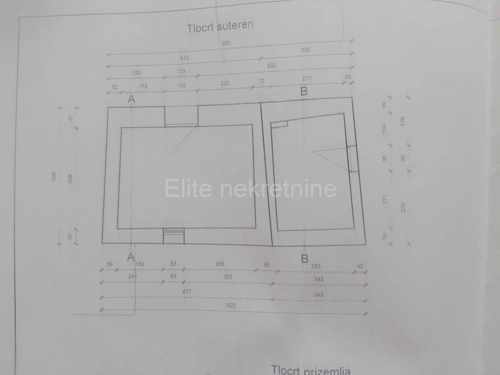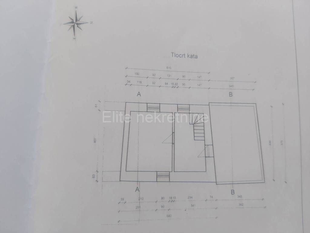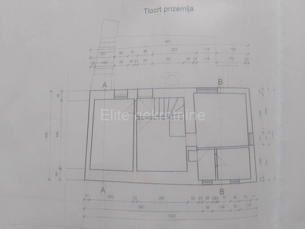 The total area of the living space with terraces is about 130 m2 (90.31 m2 plus two terraces of 38 m2) with an additional covered outbuilding of 22 m2. It consists of three floors (each with a living space of approximately 30 m2 without a terrace) and it is possible to convert each floor into a separate residential unit (apartment) with a separate entrance and an associated part of the yard, or terrace. On the ground floor there is a tavern and a separate room, on the first floor there is a living room, bedroom, kitchen, bathroom with toilet and a terrace, while on the second floor there are two bedrooms and a large terrace.