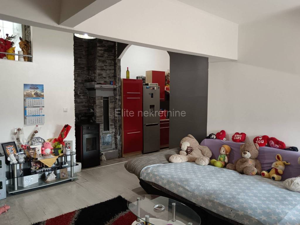 Terraced house for sale - Matulji JušićiA terraced house with a total area of 115 m is for sale with a garden of 150 m and two parking spaces. The property consists of: Ground floor - a tavern that is essentially a studio apartment, ideal for guests or rentAn external staircase leads to the first floor where there is an apartment of 75 m, consisting of:hallwaytwo bedroomskitchen with dining roomliving roombathroomverandaA garden shed is also available for use, which provides additional space for storage or other needs. The house has a new facade, is neatly maintained, and is located in a quiet location with good traffic connections. Price: 170,000For more information and to arrange a viewing, please contact us! The agency commission is charged in accordance with the General Terms and Conditions, which are available at www.elite-nekretnine.hr/opci-uvjeti-poslovanja.