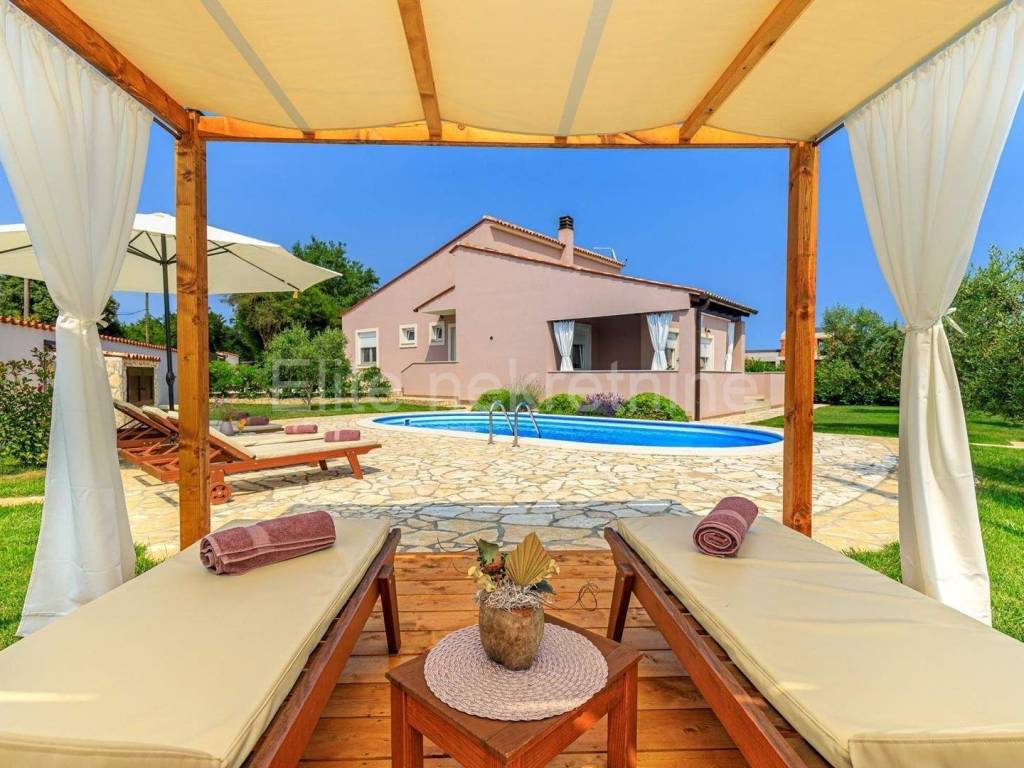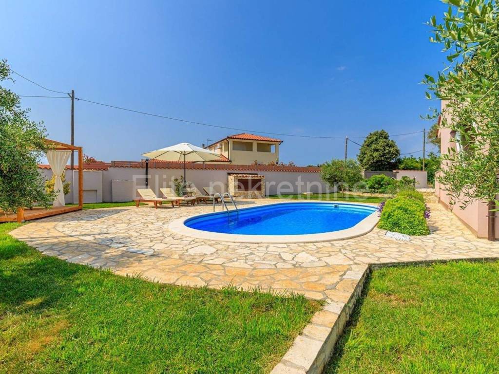 BEAUTIFUL VILLA WITH POOL IN LOBORIKA PERFECT HOLIDAY NEAR PULA In the quiet village of Loborika, within the municipality of Barban, a modern villa with a spacious garden and a private pool is for sale. Located just a 10-minute drive from Pula, the villa offers the perfect combination of luxury, comfort and privacy. BASIC FEATURES:Modernly decorated villa with swimming pool (31 m)3 double bedrooms2 bathrooms with showers + separate toilet with washing machineSpacious living room with sofa bedFully equipped kitchen with dining areaLarge yard with landscaped garden EXTERIOR IDEAL FOR RELAXATION AND ENTERTAINMENT: Covered terrace with large dining table Barbecue, deck chairs, trampoline and swings for outdoor enjoyment Private parking in front of the house Loborika, Barban municipality peaceful surroundings, only 10 minutes drive to PulaClose to beautiful beaches and tourist attractions of southern Istria, Ideal for a family vacation and enjoying nature ADDITIONAL BENEFITS:The villa is fully air-conditionedFree WiFi Documentation in order!An excellent investment for a tourist rental or your own vacation in the heart of Istria! Direct contact with the agent: Sandra B. +385912503331E-mail: sandra.elitenekretnine@gmail.com The agency commission is charged in accordance with the General Terms and Conditionswhich are available atpage www.elite-nekretnine.hr/opci-uvjeti-poslovanja.