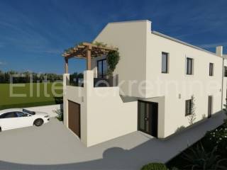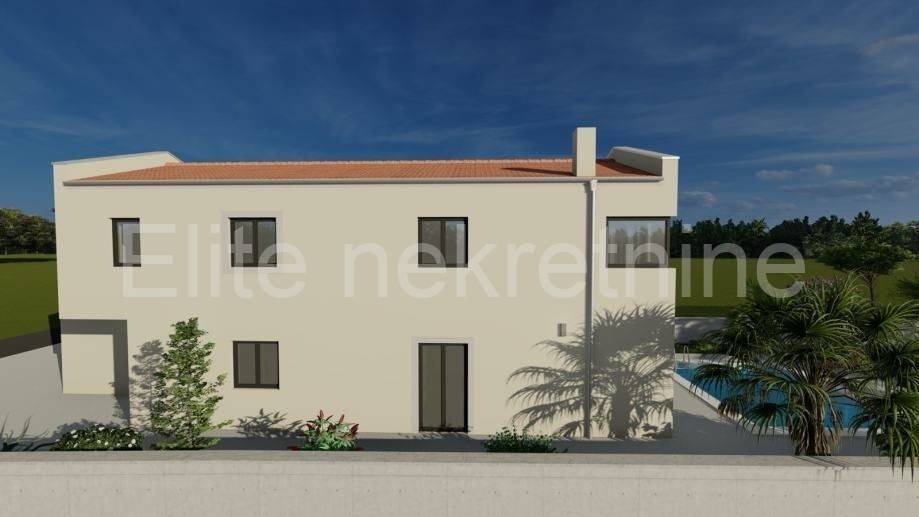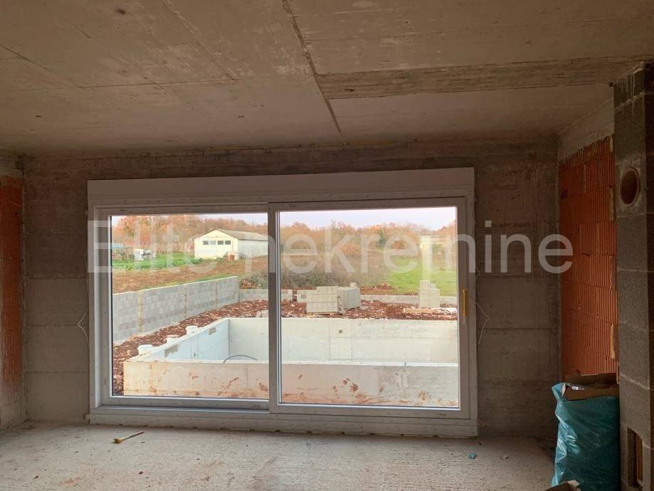 For sale is a modern new building in the unfinished phase, which is being built with top quality materials. The house covers an area of 180 m, with a pool area of 24 m. The building is currently under roof and is complete with sheet metal, while the windows and doors are made of Veka joinery, with electric shutters. The garage door has also been installed.