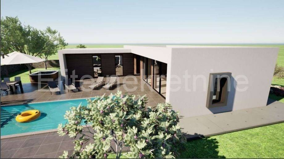 Istria, Svetvinčenat, Bibići - building plot with a project for a single-storey house with a swimming pool Not far from Svetvinčent, in the town of Bibići, there is a building plot for sale with a paid project for the construction of a single-storey house of 100 m2 with a swimming pool of 36 m2, with an area of 600 m2, so it is also possible to change the project for the construction of a larger house.The plot has a rectangular shape and flat terrain. This building plot is located in the built-up part of the settlement and has access from a public marked road and all the infrastructure is right next to the plot. Direct contact with the agent:Jadranka K. ǀ Mobile: 091 250 2851 ǀ E-mail:jadranka.elite@gmail.com